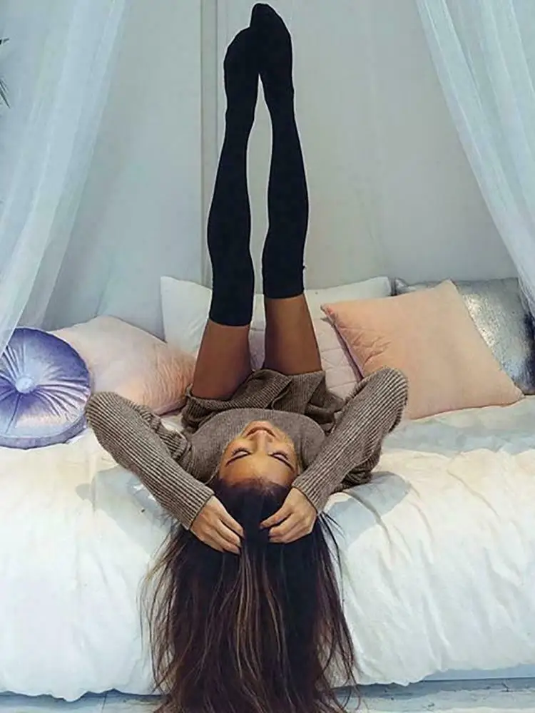 Женские чулки 2020, привлекательные вязаные хлопковые длинные чулки выше колена, осенние женские Элегантные чулки до бедра