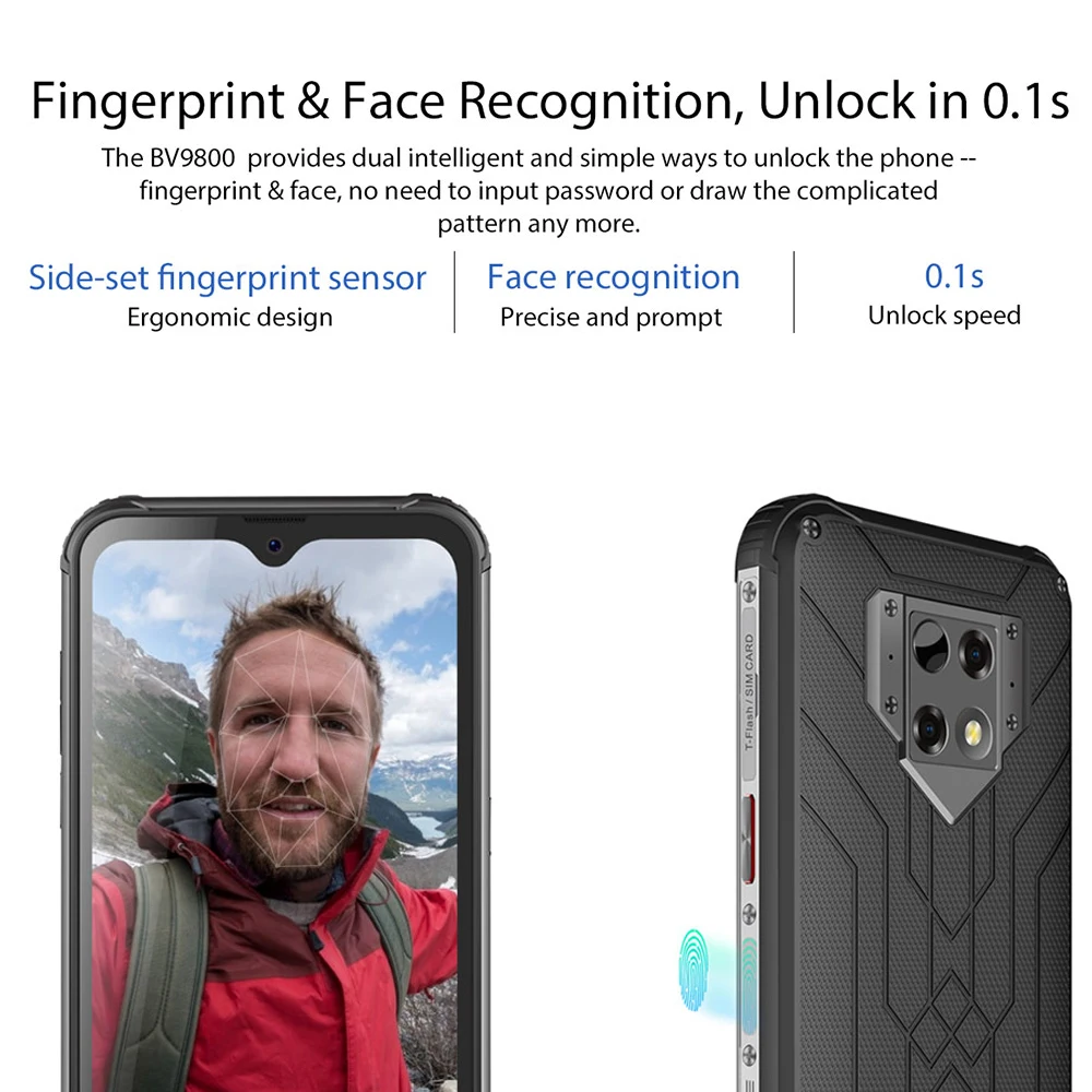 Смартфон Blackview BV9800, Helio P70, Android 9,0, 6 ГБ + 128 Гб, задняя камера 48 МП, водонепроницаемость IP68, 6580 мА ч, 6,3 дюйма FHD мобильный телефон