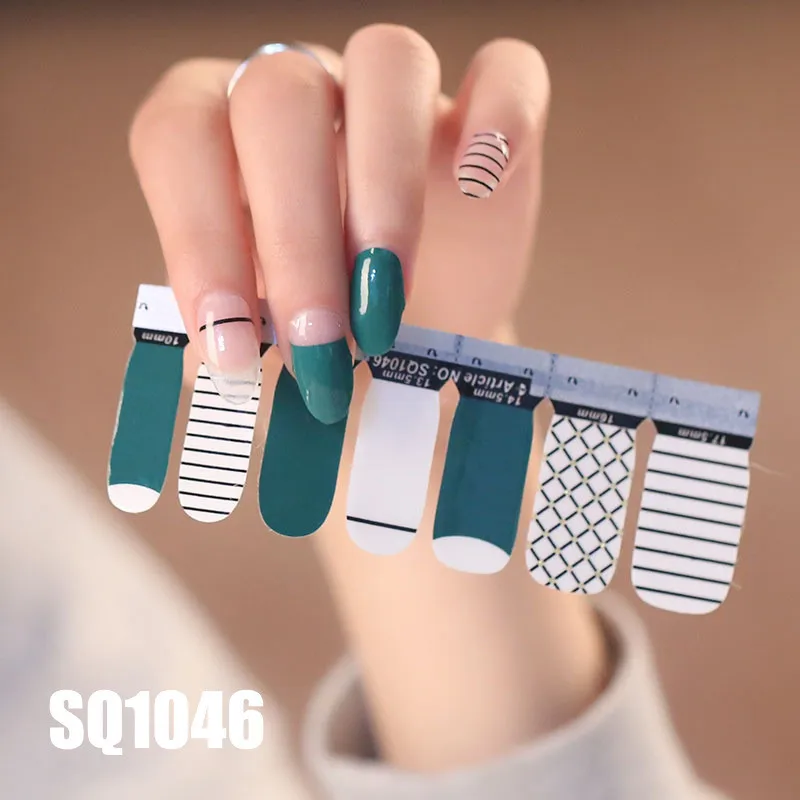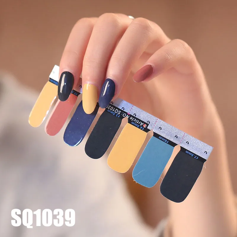 Самоклеящиеся наклейки для дизайна ногтей, 14 наконечников, с мраморным градиентом, для нейл-арта, полировки, фольги, конфетных цветов, серии SQ