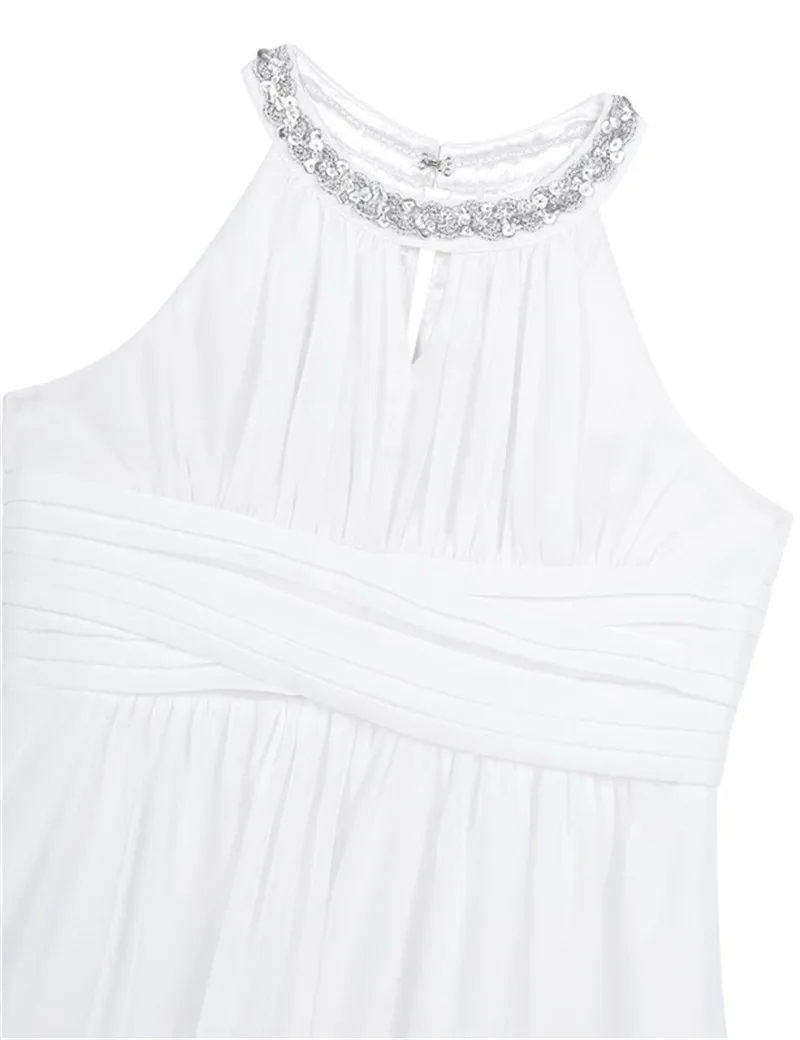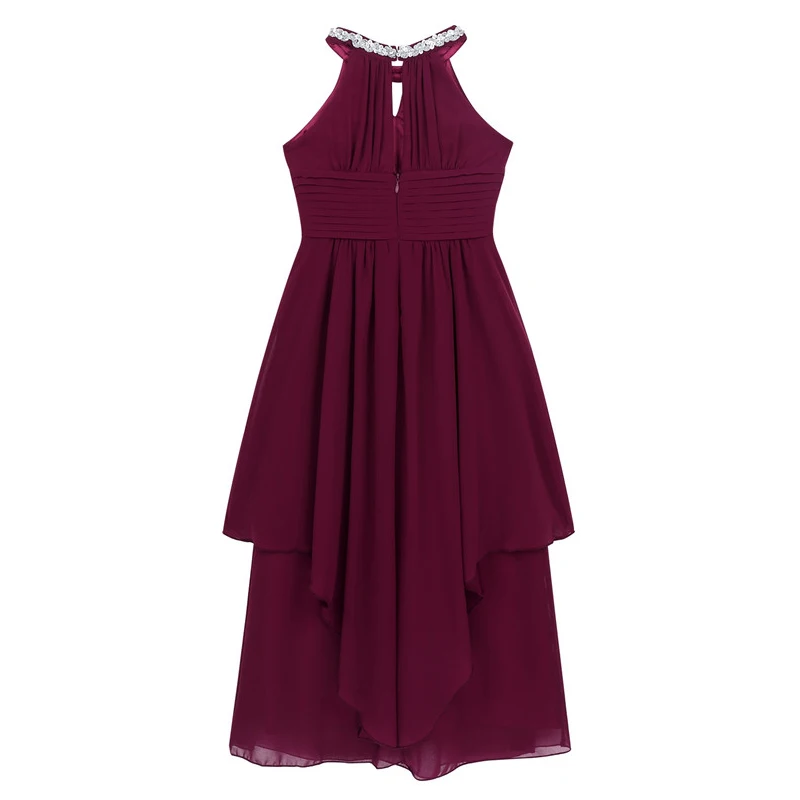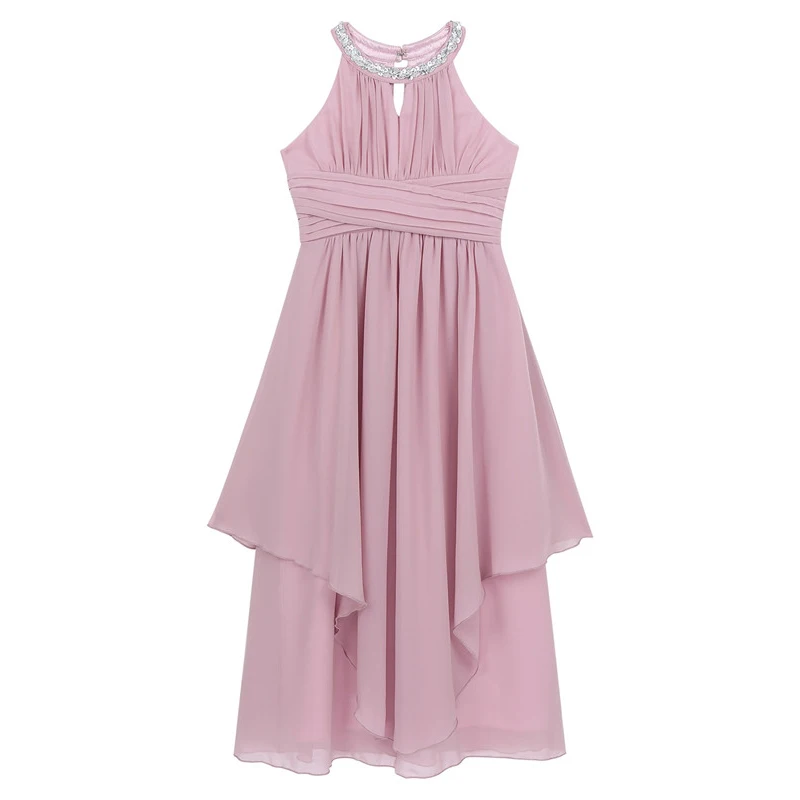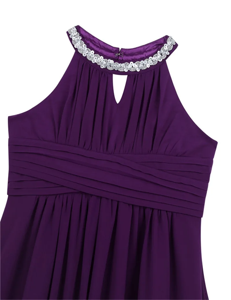 Особенности:Платье изготовлено из полиэстера и шифона, ручная стирка и сушка.Таблица размеров означает возраст для девочек, но только для общего руководства.Без рукавов, с блестками, на шее, с застежкой. Лиф с рюшами и треугольными вырезами спереди. Плиссированный стиль с высокой талией. Спинка с раздельным дизайном.Скрытая молния сзади. 3 слоя платье из 2-х слоев шифона, 1 слой атласной подкладки. Верхний шифоновый слой с асимметричным подолом. Красивое и стильное платье для вашей девочки.Идеально подходит для вечерние, свадьбы, театрализованного праздника, дня рождения, праздника, фотосъемка, официальное мероприятие или другие особые случаи.