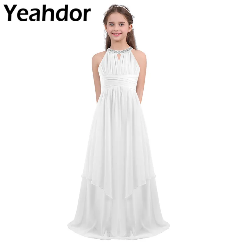 Платье подружки невесты длиной до пола без рукавов с блестками; Шифоновое платье принцессы с цветочным узором для девочек на День рождения; Платье для свадебной вечеринки