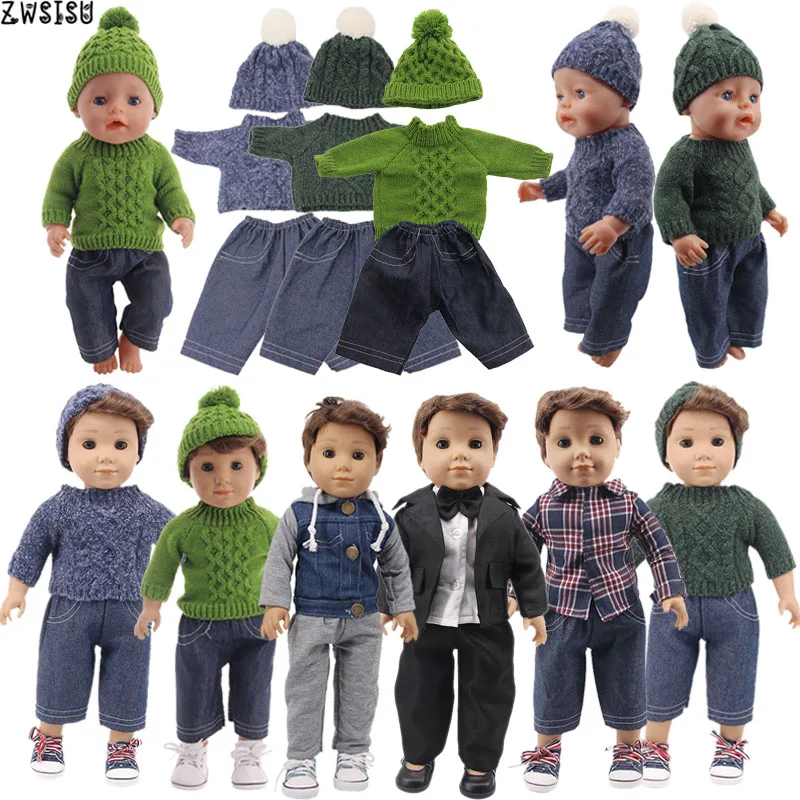 Одежда для кукол, 3 шт.компл., шапка + свитер + джинсы, для куклы-мальчика, Логан, 18 дюймов, 43 см