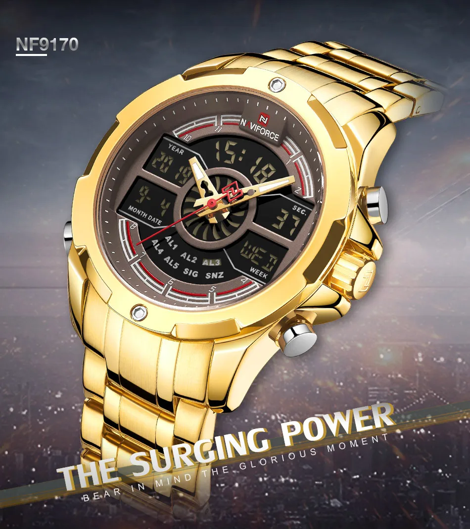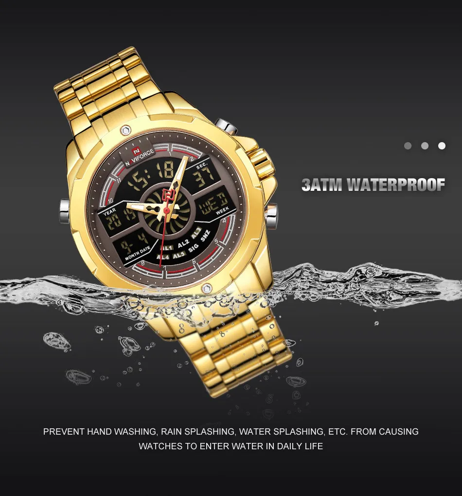 Часы наручные NAVIFORCE Мужские кварцевые, деловые брендовые Роскошные водонепроницаемые спортивные цифровые