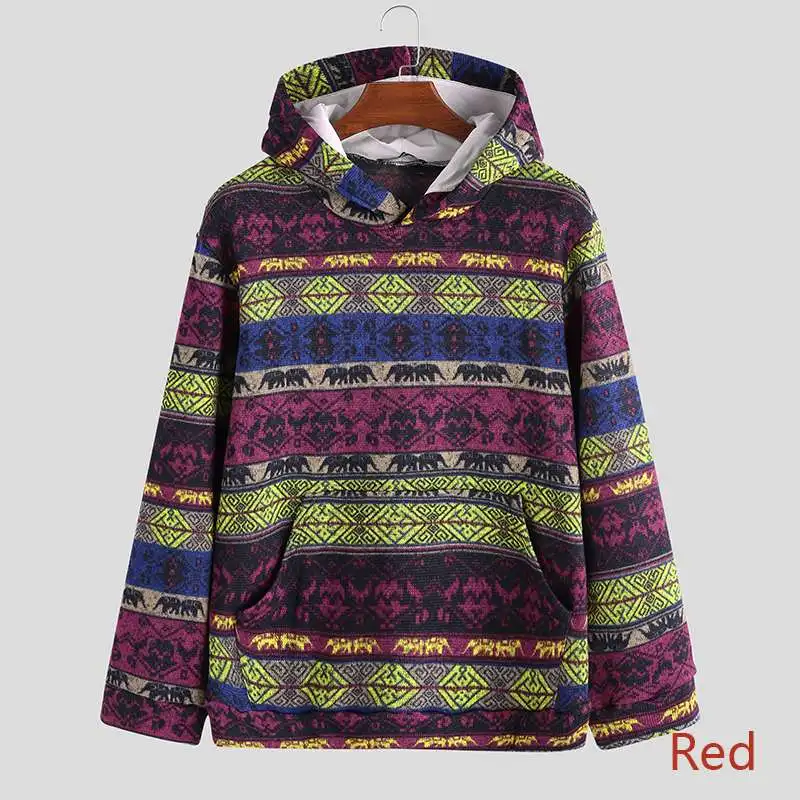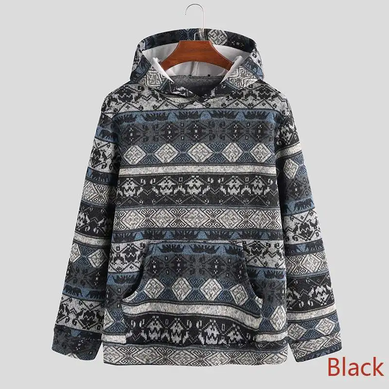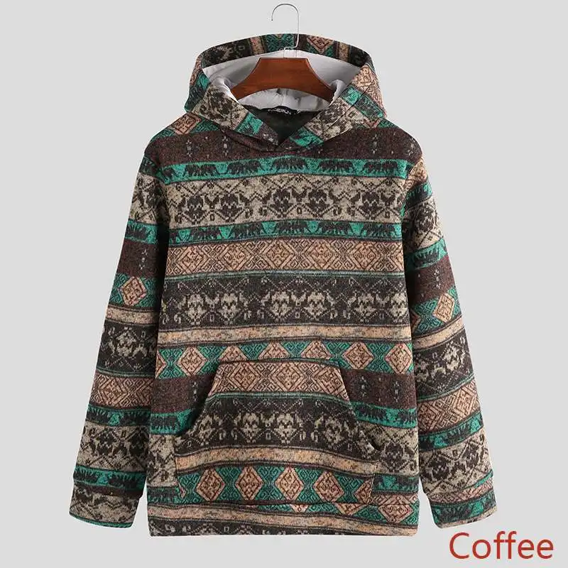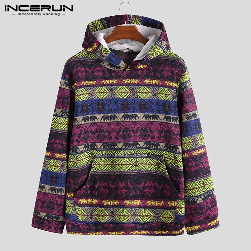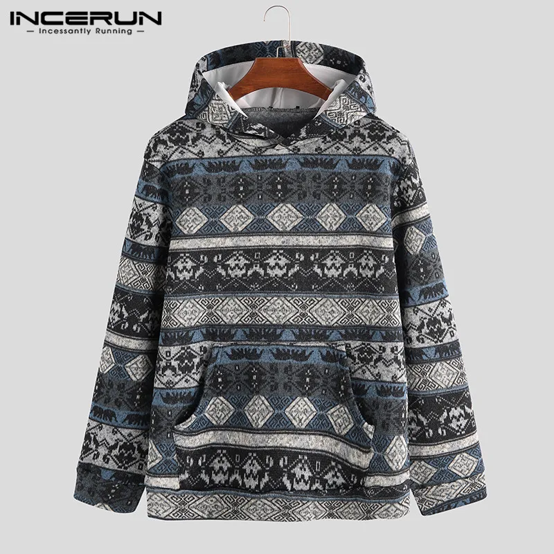 Мужские худи с этническим принтом и карманами, уличная одежда, пуловеры с капюшоном и длинным рукавом, трикотажная осенне-зимняя модная Толстовка INCERUN 2021