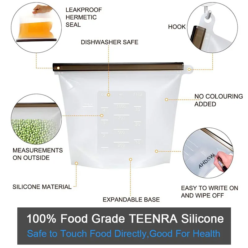 Многоразовая печать силиконовые пакеты для пищевых продуктов TEENRA, пакеты для хранения свежих продуктов на молнии, вакуумные герметичные пакеты для контейнер в холодильник, инструменты, 4 шт.