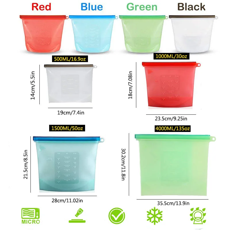 Отличные силиконовые сумочки, обеспечивают компактное хранение продуктов в холодильнике. Герметичные и удобные. Приобретением довольна, товар и продавца рекомендую.