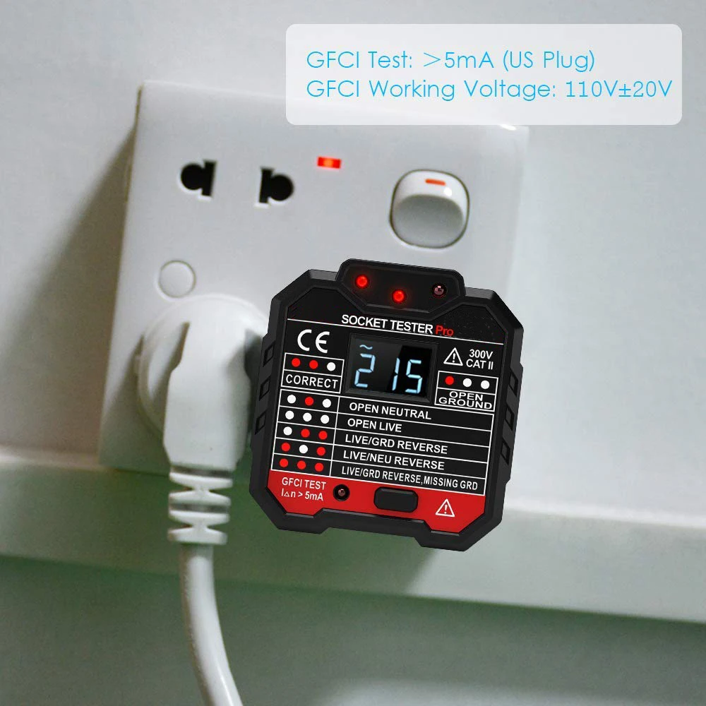 Тестер гнезд Protmex проверяет нам розетки для правильной проводки и функции отключения для GFCI. Он проверяет вашу систему защиты, чтобы обеспечить бытовую электрическую безопасность, защищая вашу безопасность от риска удара электрическим током