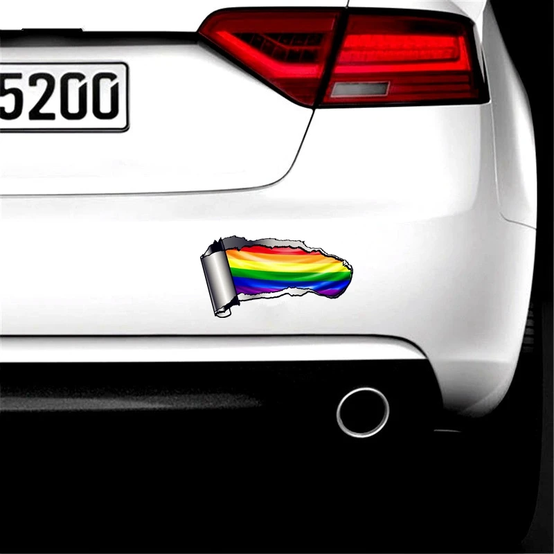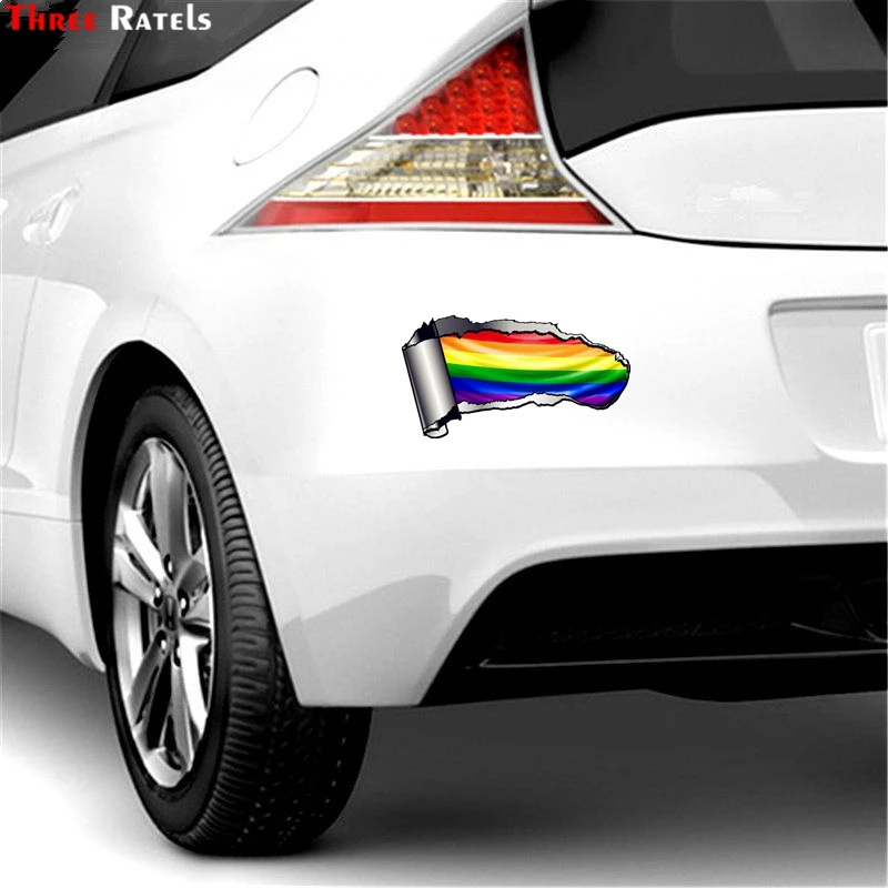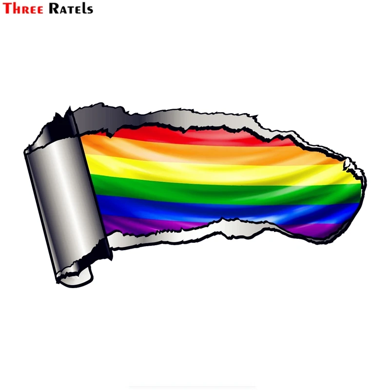 Три Ratels FTC-863 #20x10,8 см рваные открытая рана рваные металлический дизайн с ЛГБТ, гей-Прайд Радужный Флаг внешний Виниловая пленка для оклеивания автомобилей, Стикеры