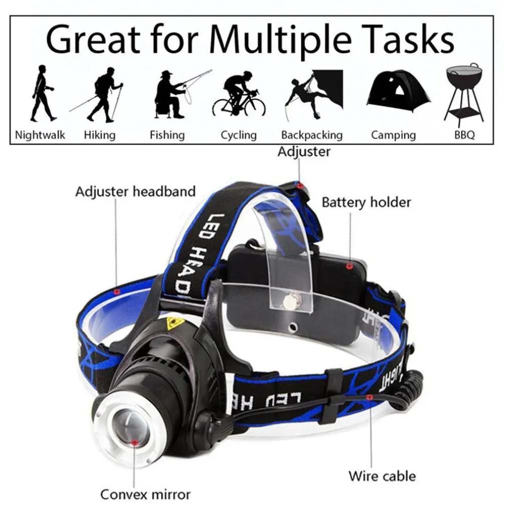 Светодиодный налобный фонарь T6, водонепроницаемый Головной фонарь с фокусировкой, для рыбалки, кемпинга