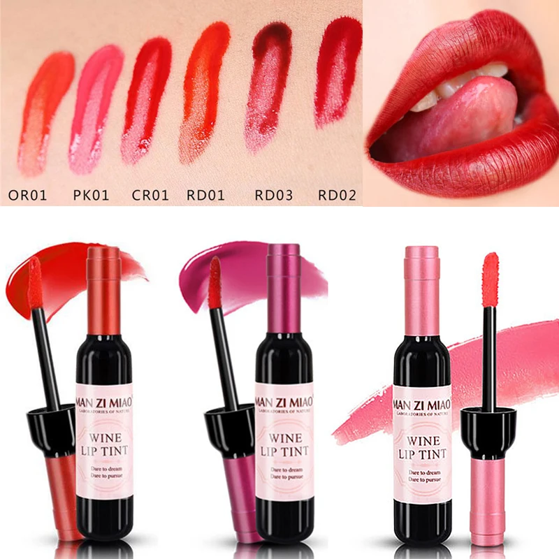 Матовый блеск для губ в бутылке красного вина, водостойкий стойкий ...