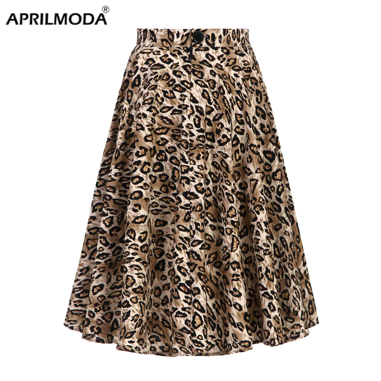Весенняя леопардовая Ретро винтажная юбка 50s для женщин, Дамская трапециевидная юбка миди с цветочным принтом размера плюс, сексуальная юбка с высокой талией