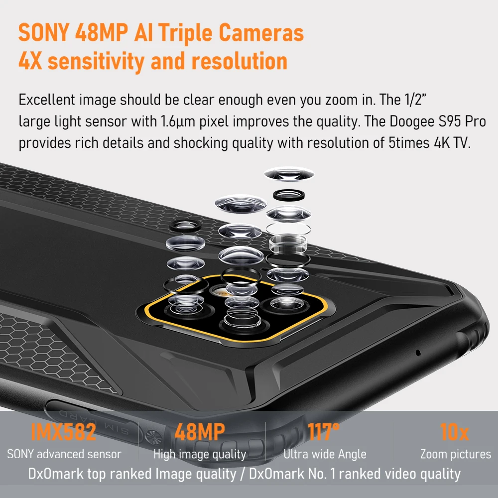 Смартфон DOOGEE S95 Pro, 8 ядер, 8 + 128 ГБ, мобильный телефон дюйма, IP68IP69K, 6,3 мАч, 48 МП, Android 9