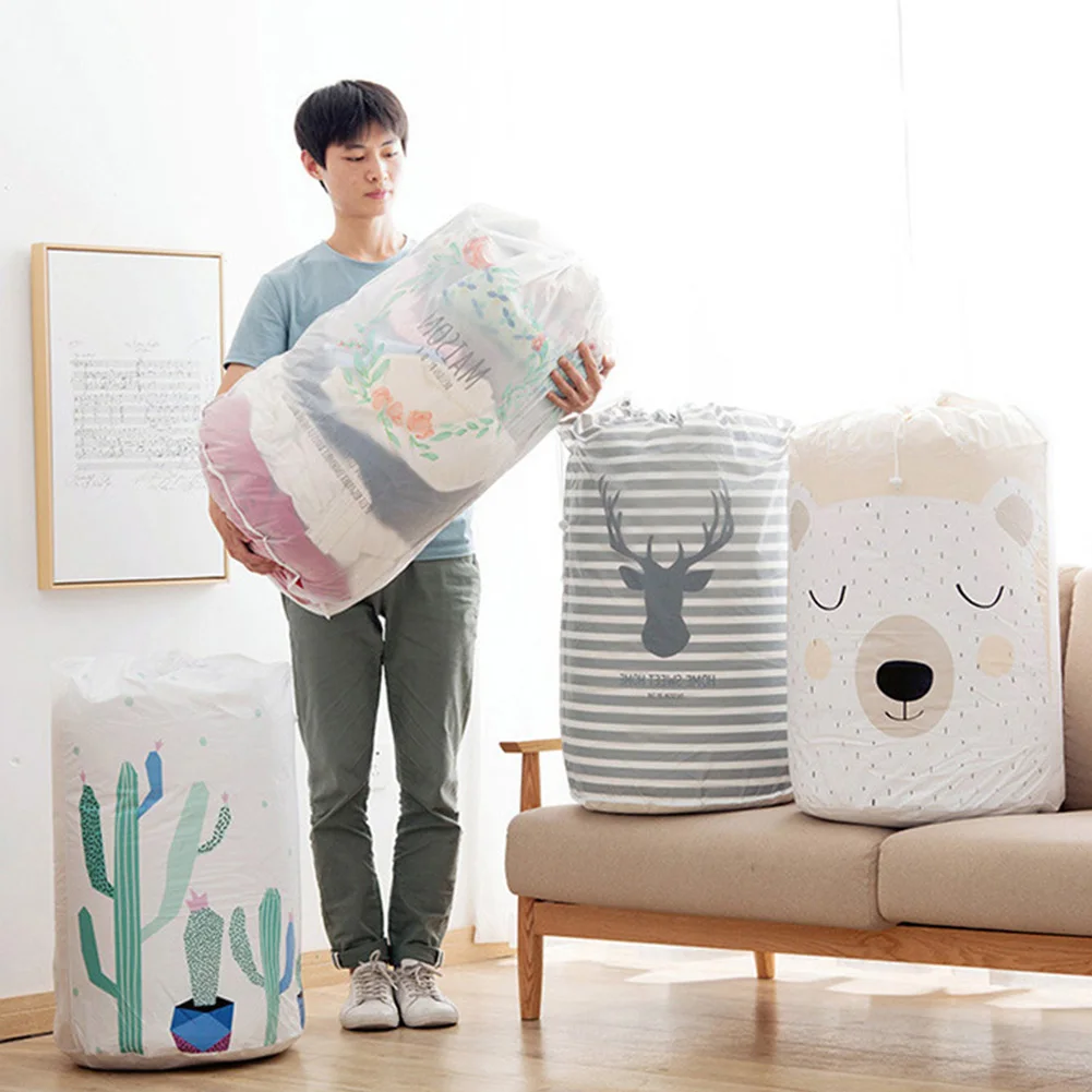 Вместительные мешки для хранения, сумка для хранения с принтом оленя, медведя, кактуса, водонепроницаемая сумка на шнурке для одеяла, постельного белья, сумка для хранения