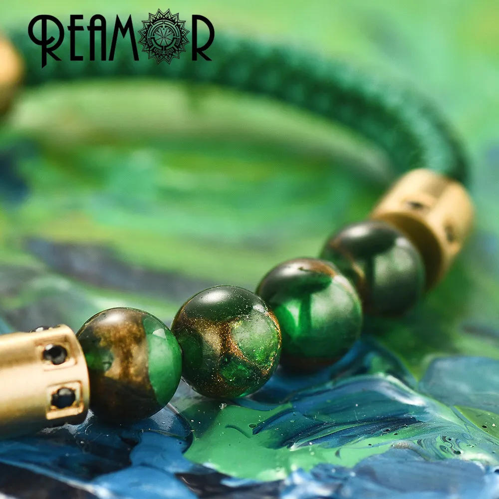 Реамор лес зеленый натуральный камень Текстура Браслеты для мужчин ...