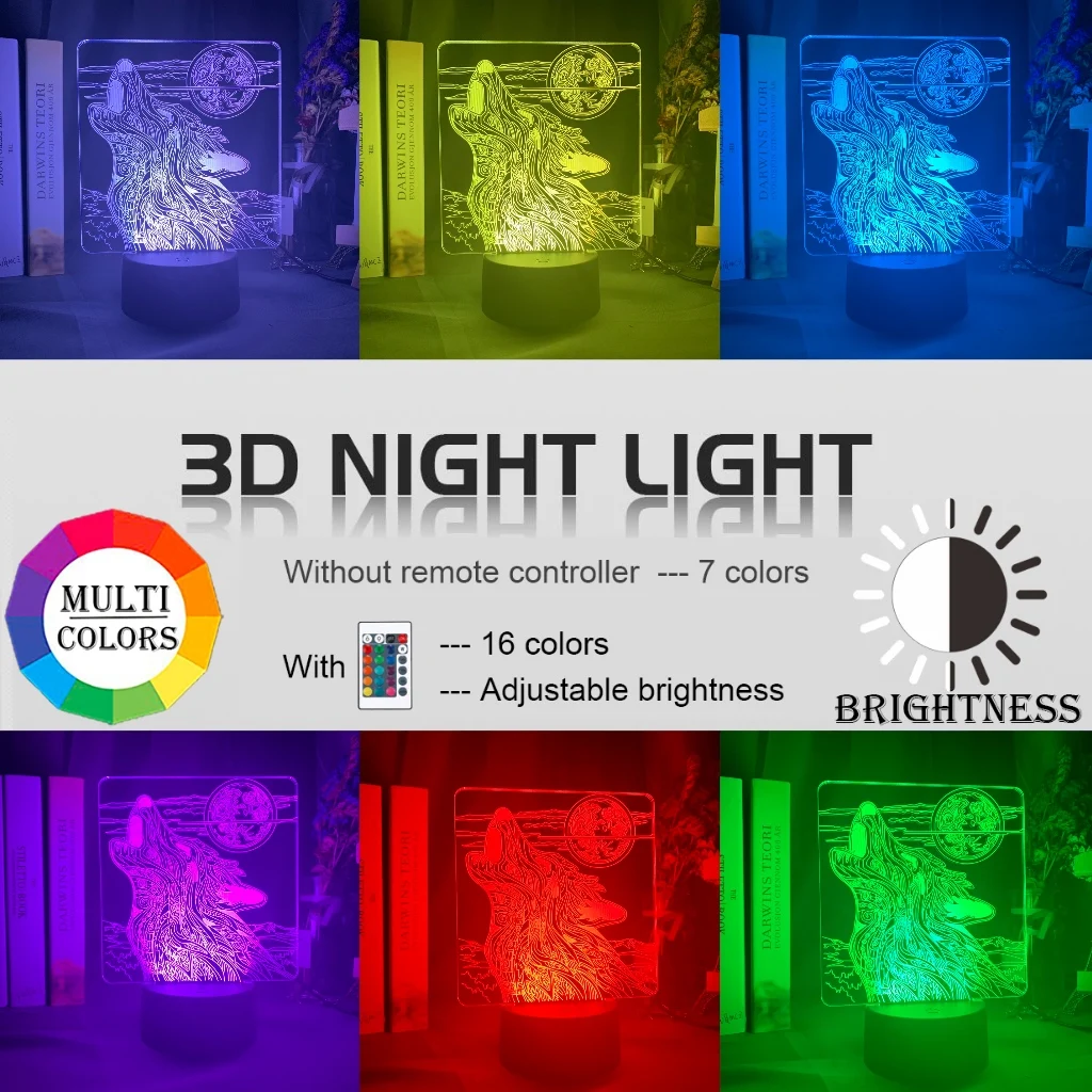 3d светильник в виде животных, волка, Луны, светодиодный ночник, меняющий цвет, на батарейках, для декора комнаты, крутой светодиодный ночсветильник, Прямая поставка 2019