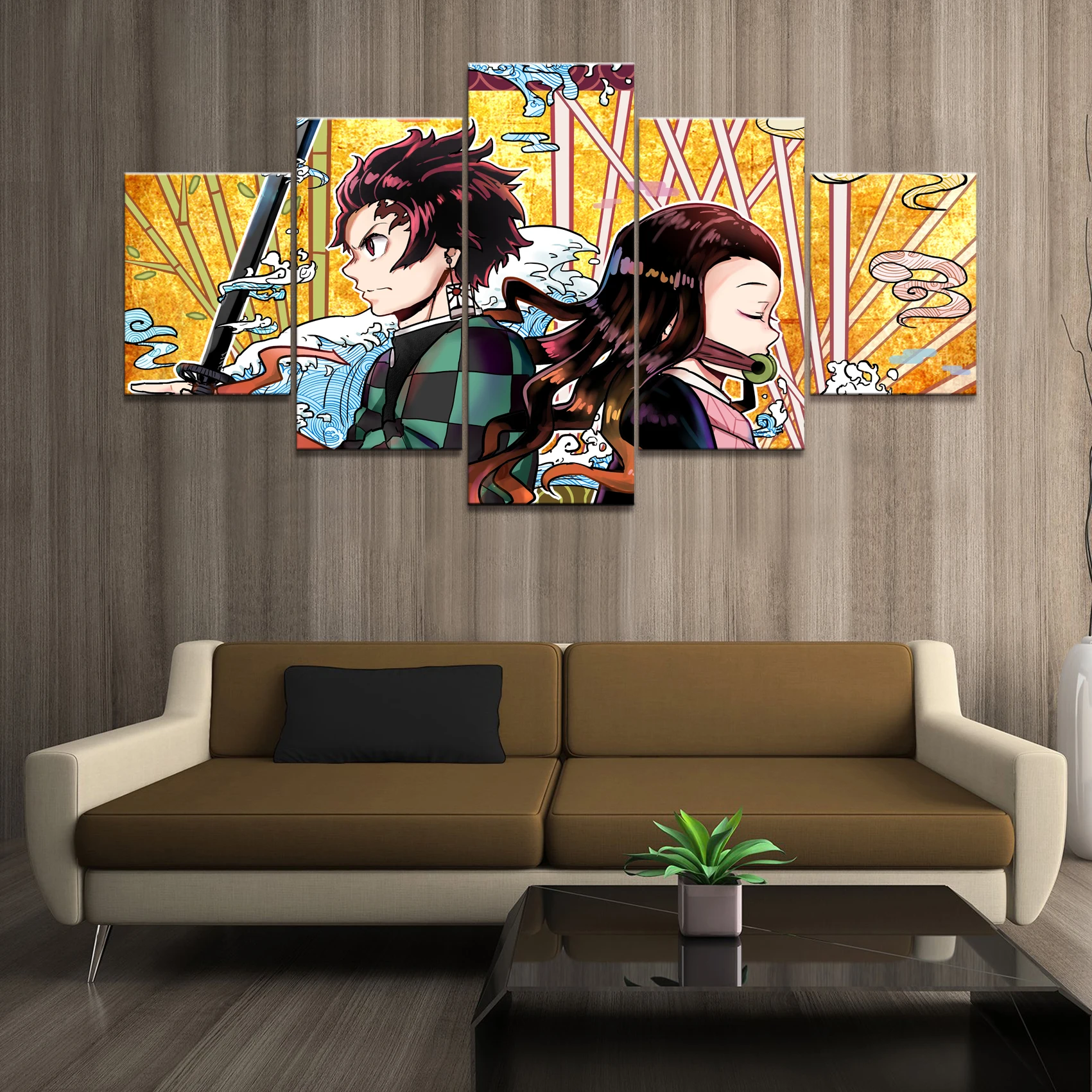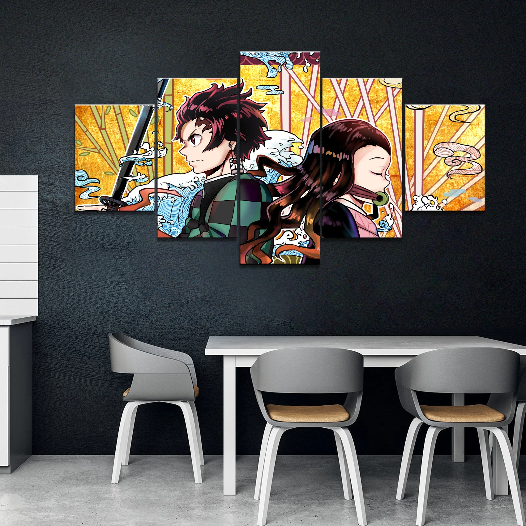 5 шт. HD аниме мальчик и девочка, Настенная картина, рассекающий демонов, киметсу, No Yaiba, комикс, искусство, холст, картины, настенное искусство, домашний декор