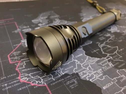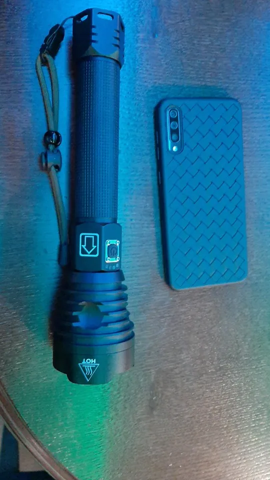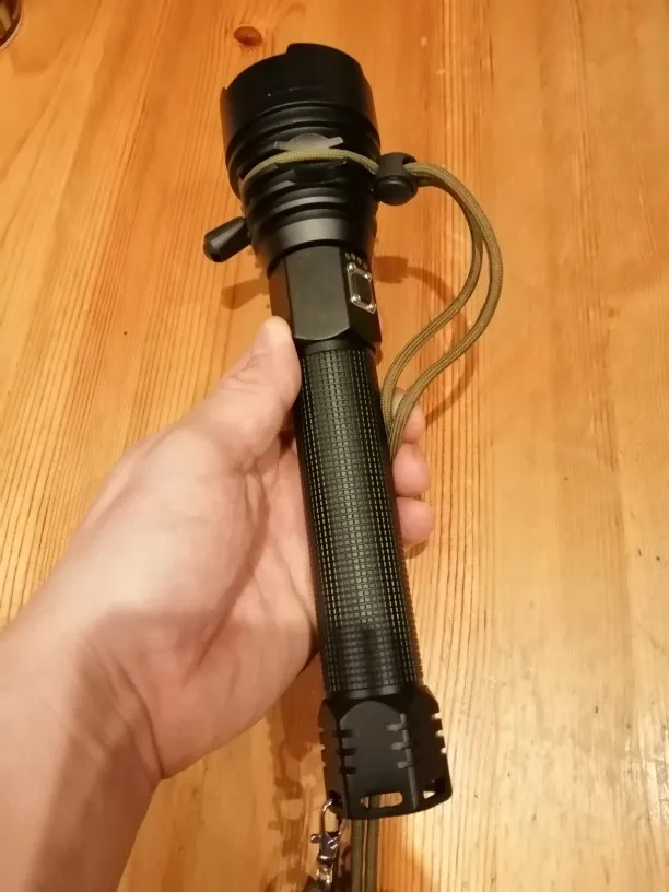 Пришёл фонарь.Мощный, зарядил,светит ярко. Три режима работы.Регулируется дальность света. Немного крупноват, тяжеловат, но это скорее достоинство. Я его сфотогафировал с телефоном шестидюймовым, чтобы показать масшатбность фонаря.