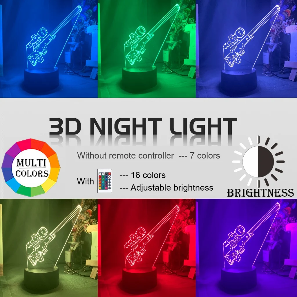 3d оптический светодиодный ночной Светильник для игровой винтовки, снайперская винтовка, украшение для офисной комнаты, классный подарок на день рождения для мальчиков, Детская лампа для спальни