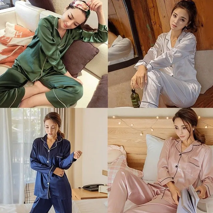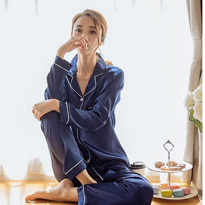 Осенняя женская мягкая шелковая атласная пижама Meihuida, пижама с длинным рукавом и пуговицами, домашняя одежда, ночное белье
