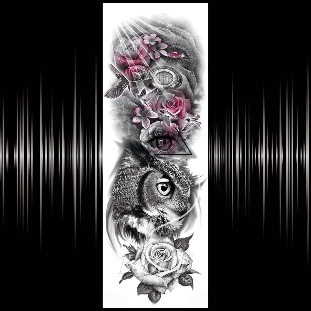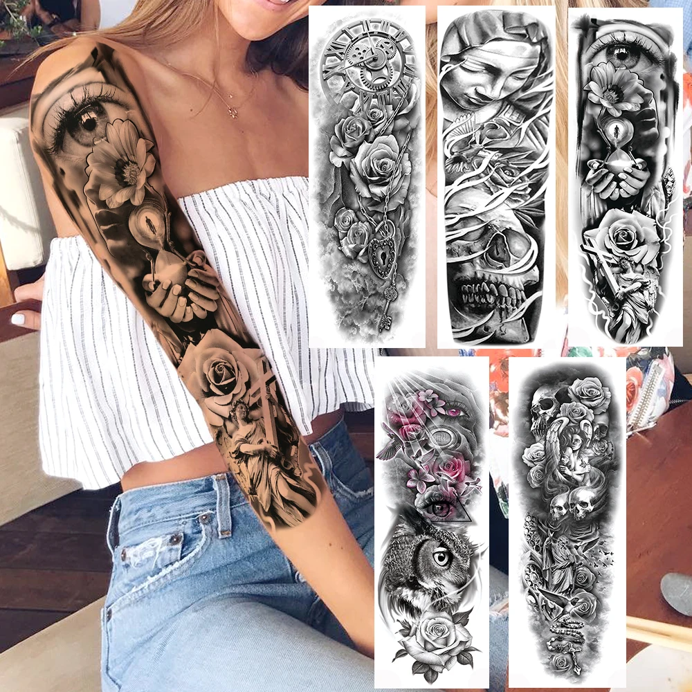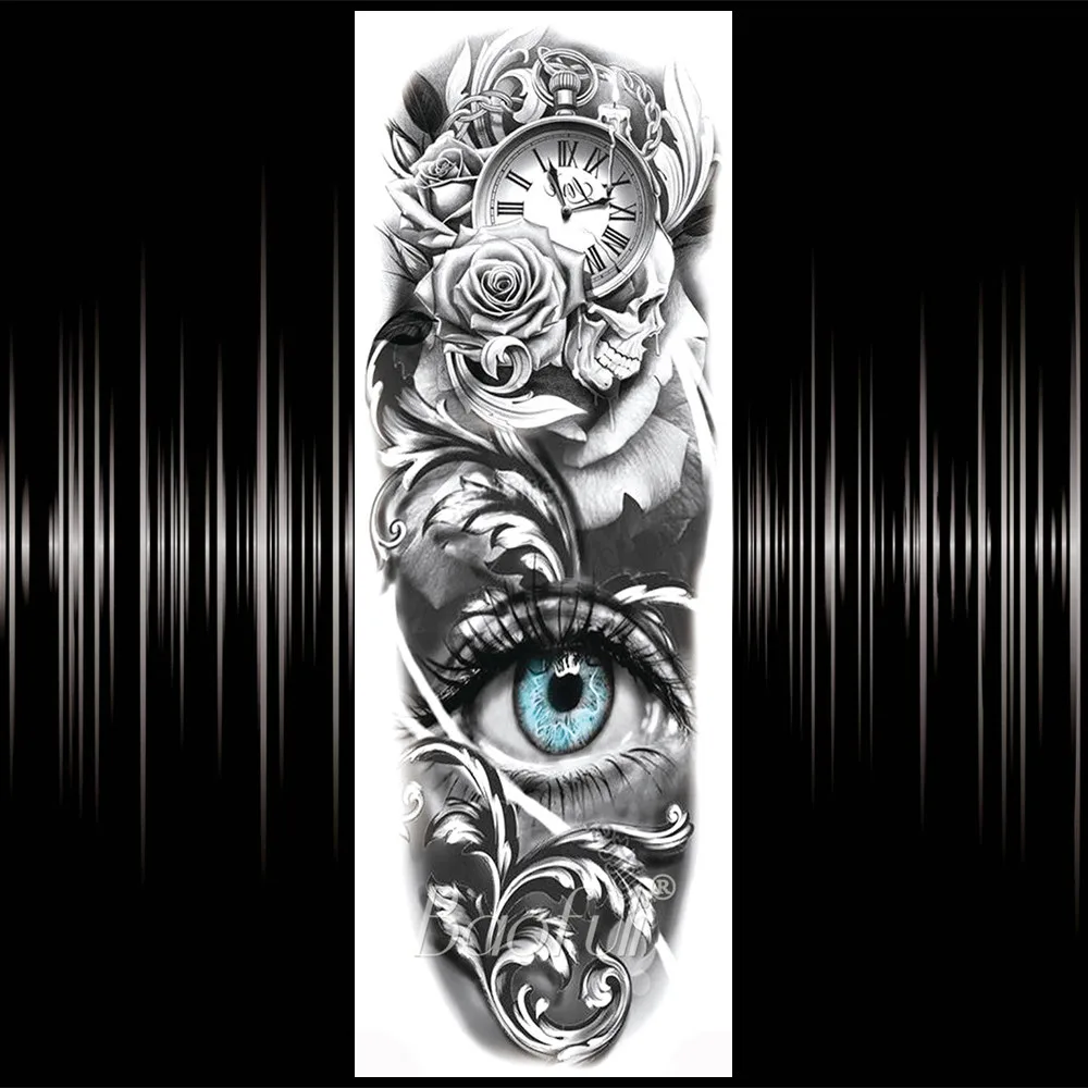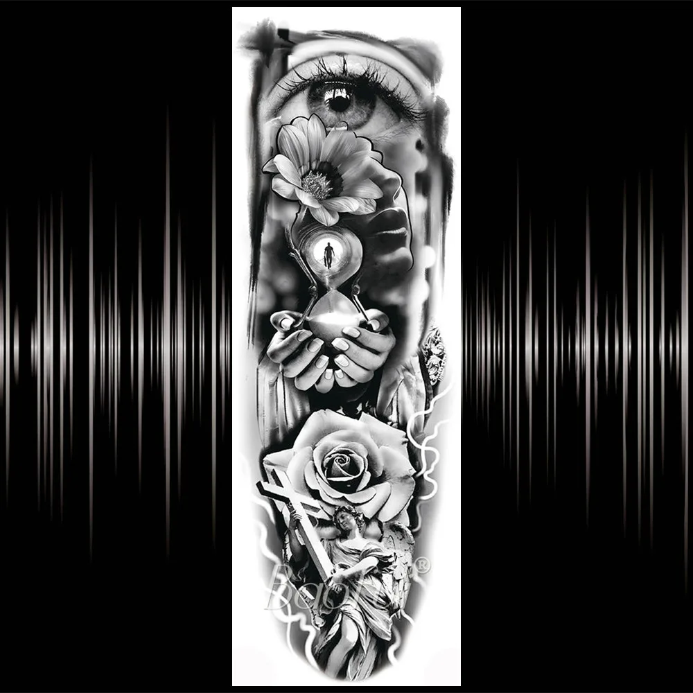 Временные татуировки BAOFULI 3D от сглаза на всю руку для женщин, мужчин, цветок розы, песочные часы, татуировки, боди-арт, реалистичные поддельные татуировки, наклейки