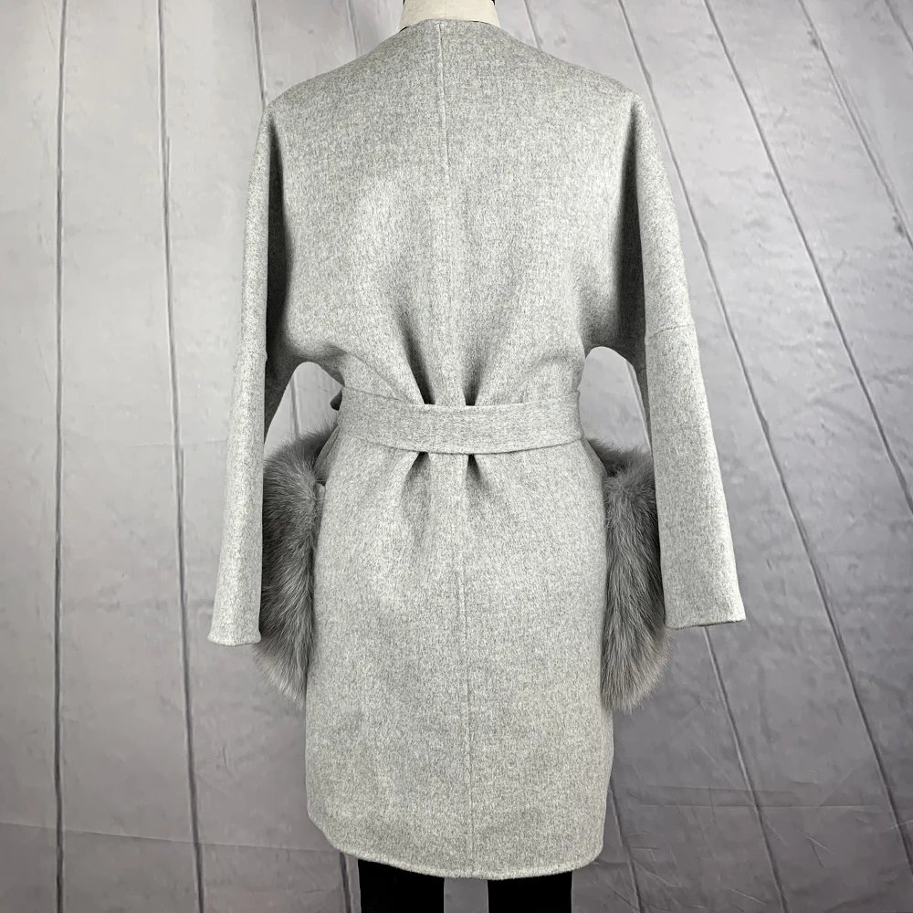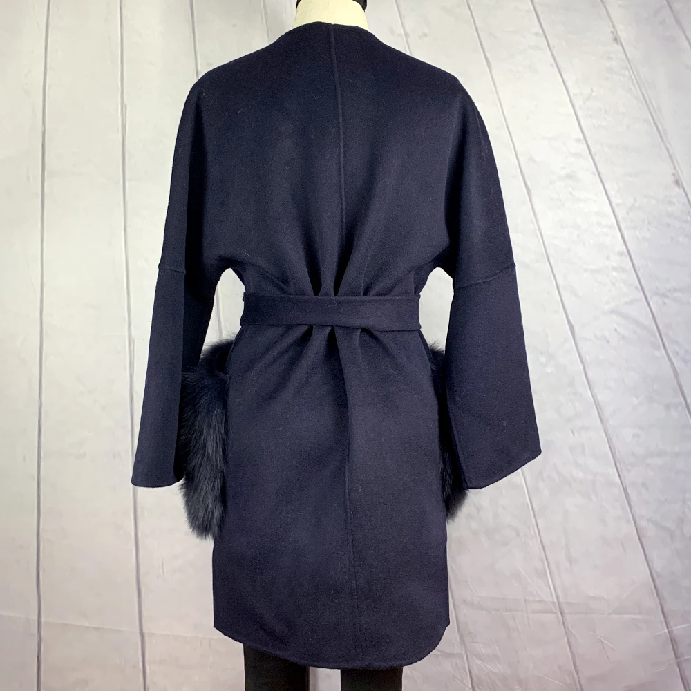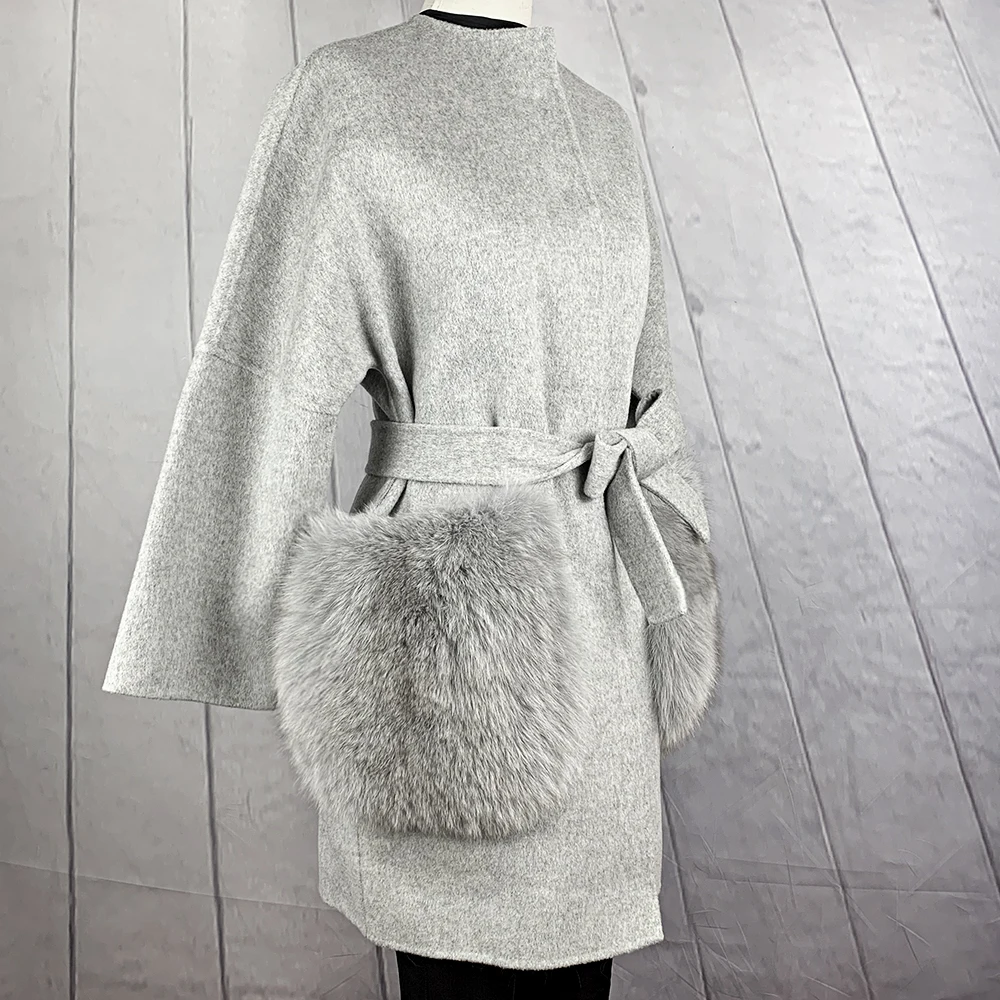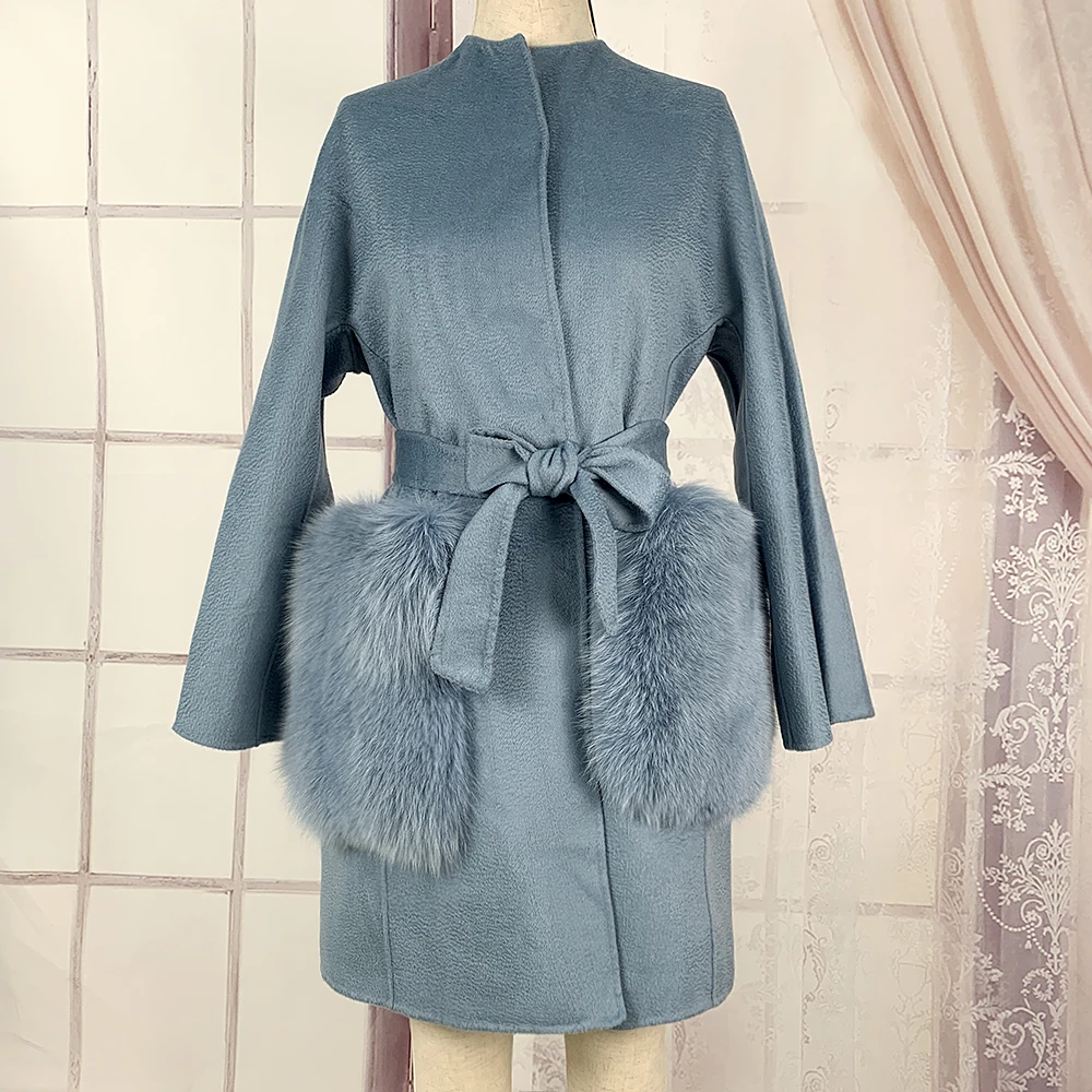 2020 Новое модное Полушерстяное пальто с натуральным лисьим мехом большой карман воротник высокого качества из натуральной кожи; Женские зимние пальто NZ-070
