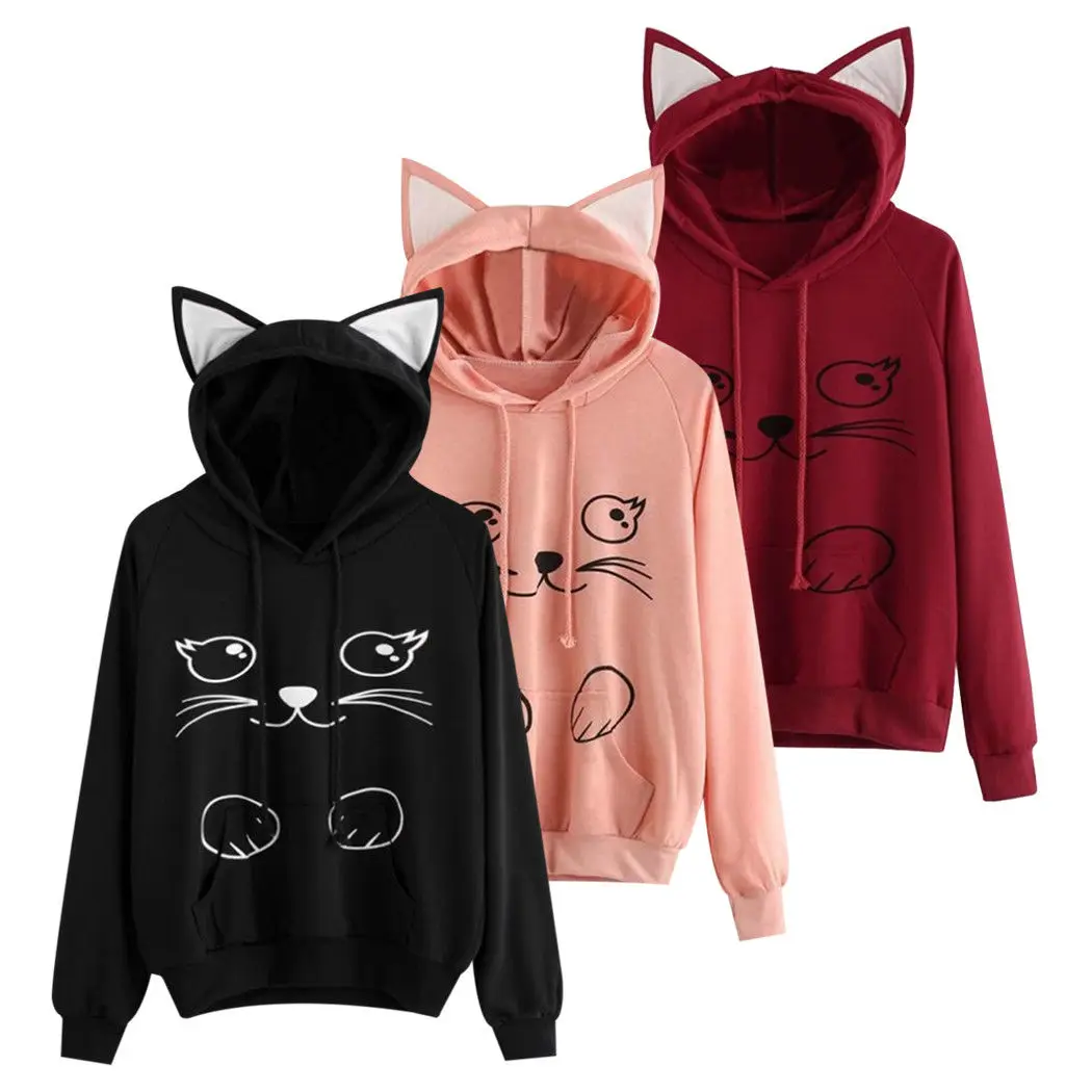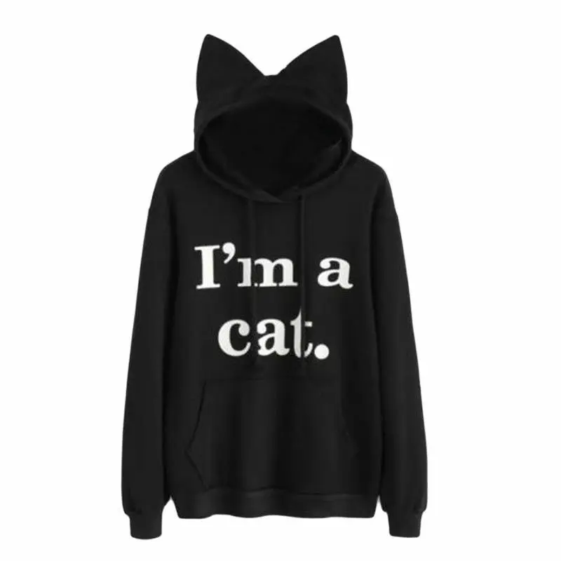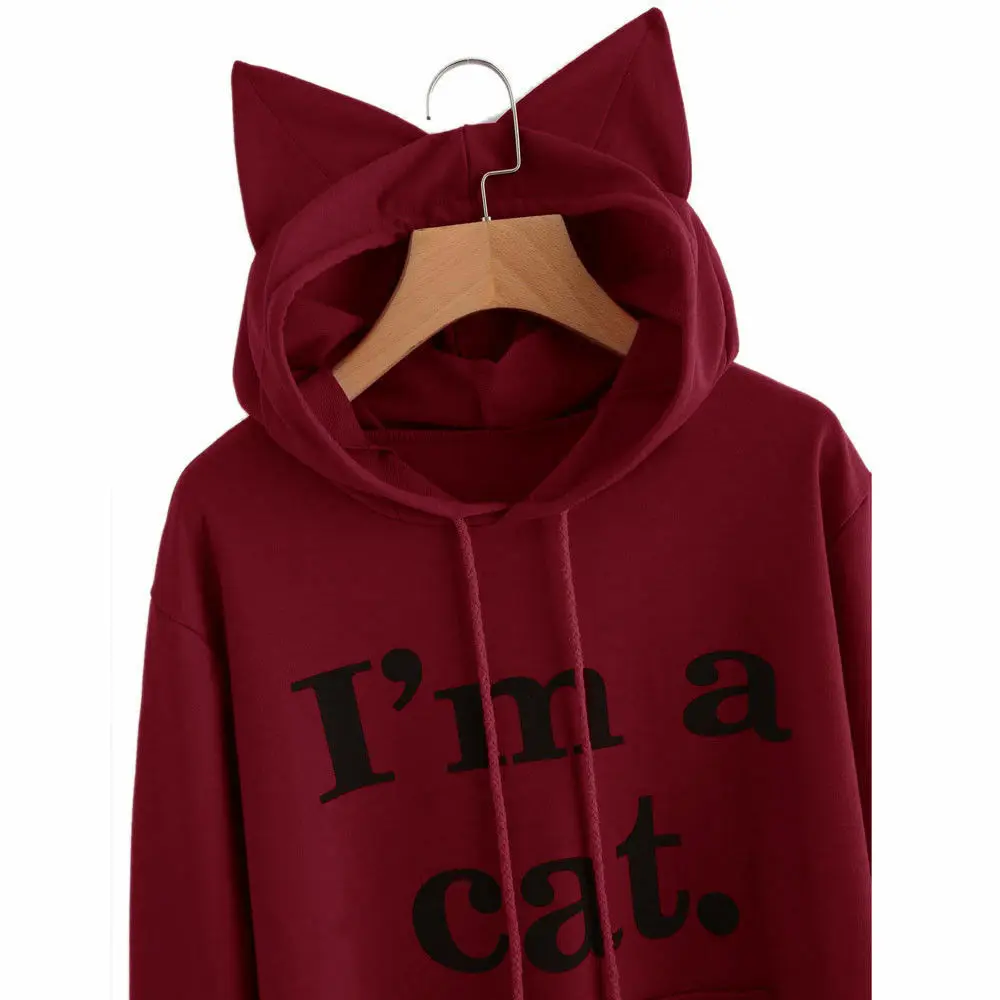 Женская Повседневная толстовка с кошачьими ушками, толстовка с длинным рукавом, свитшот с надписью, Женский пуловер свободного покроя на осень и зиму, толстовка