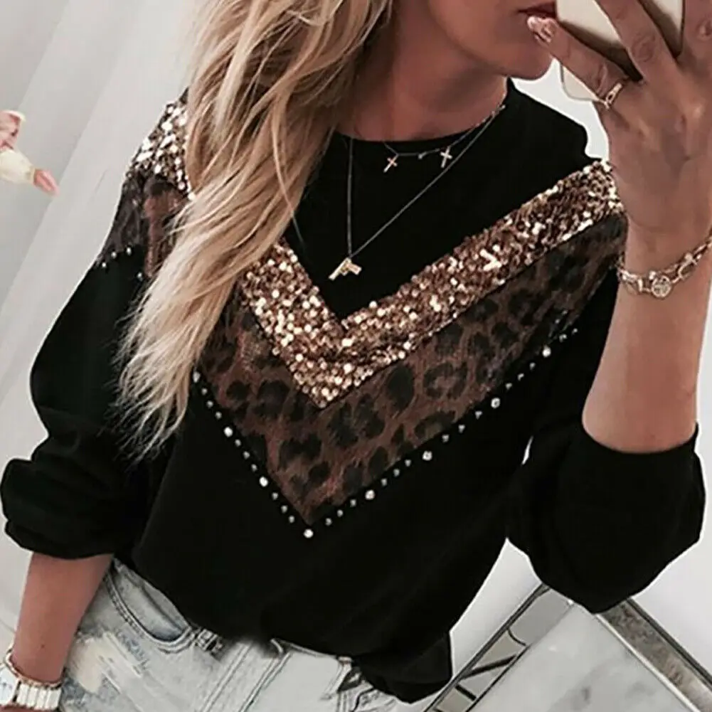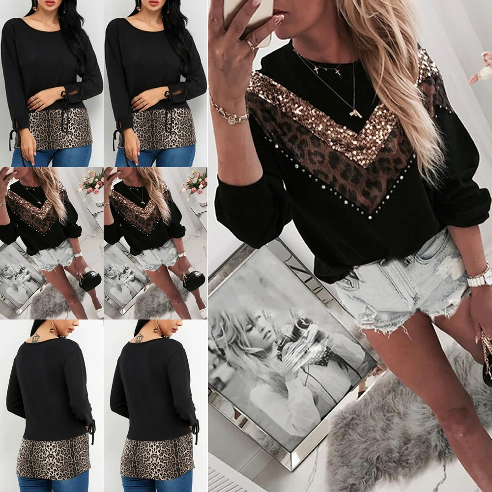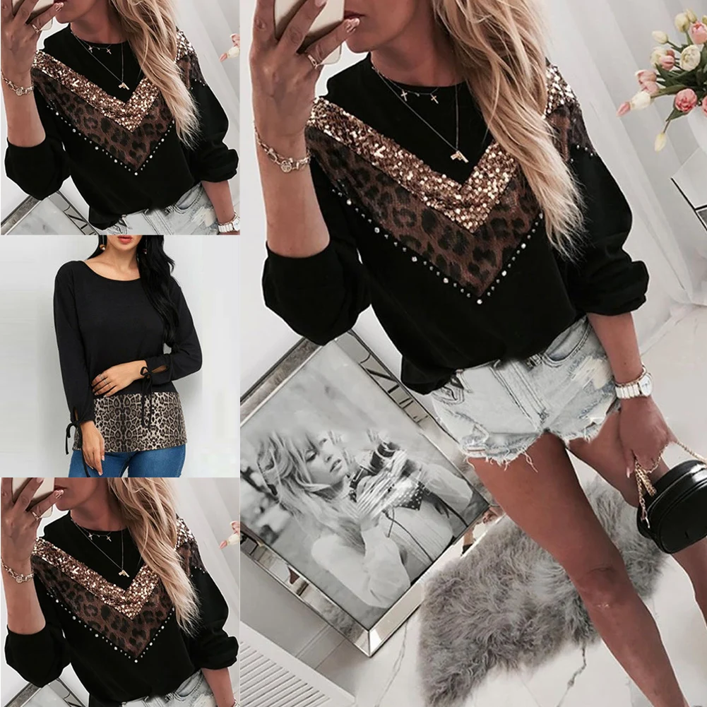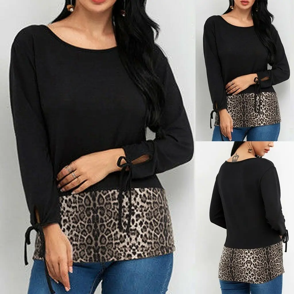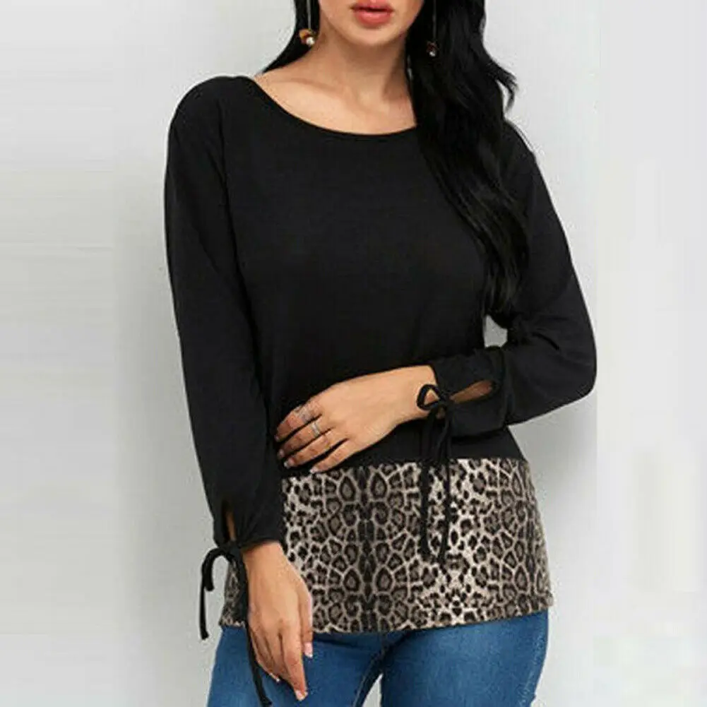 Женская футболка с длинным рукавом, весенняя, шикарная, Леопардовый принт пэтчворк, размера плюс, 2 вида стилей