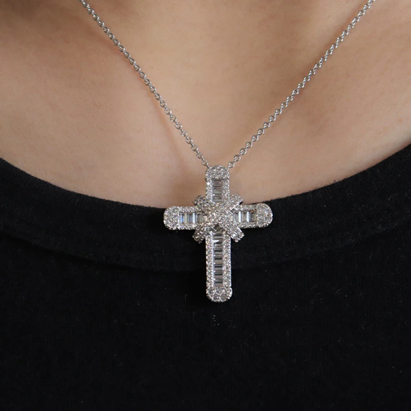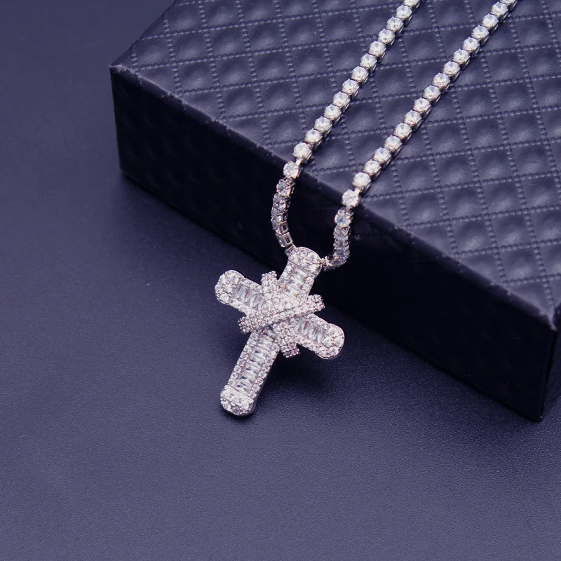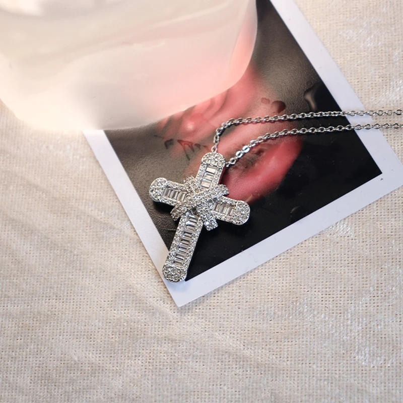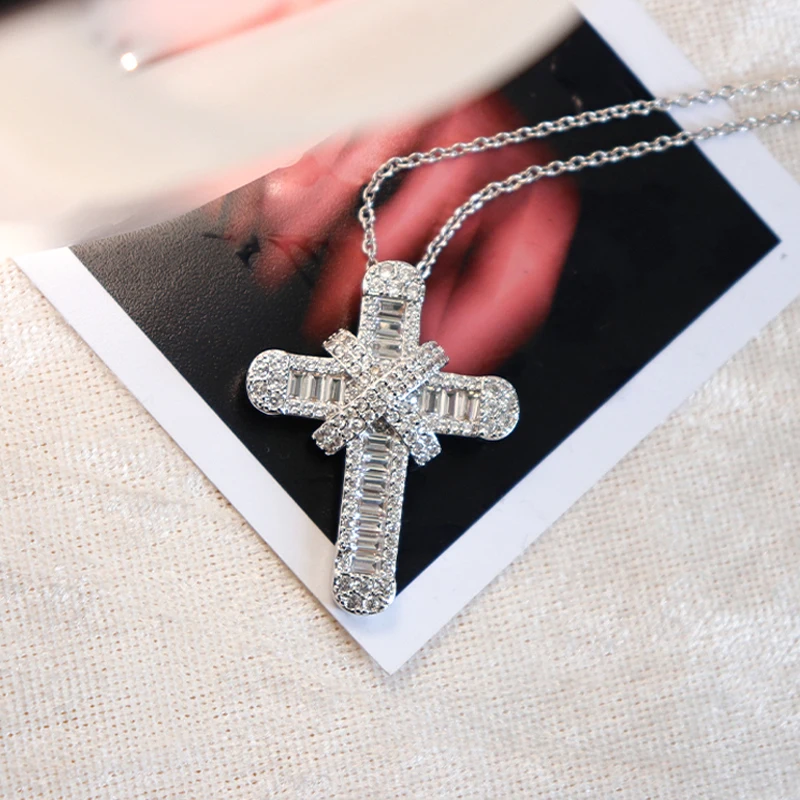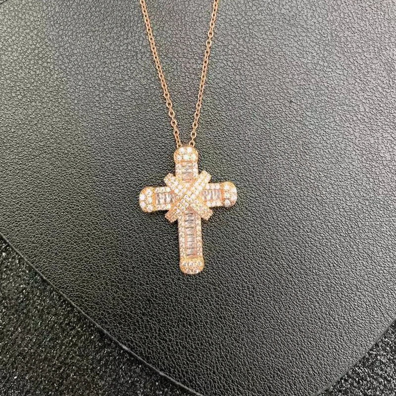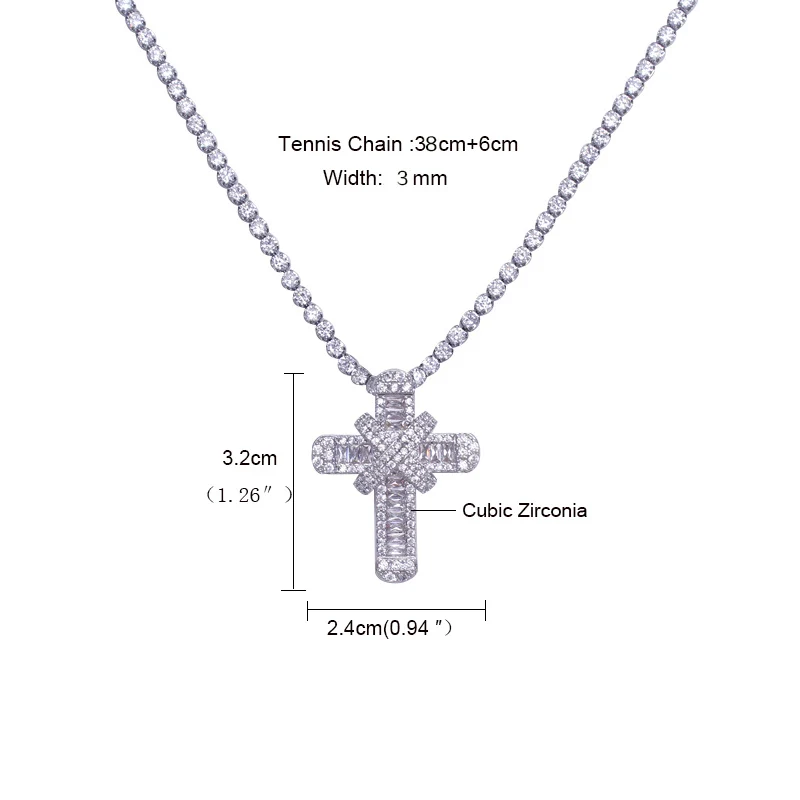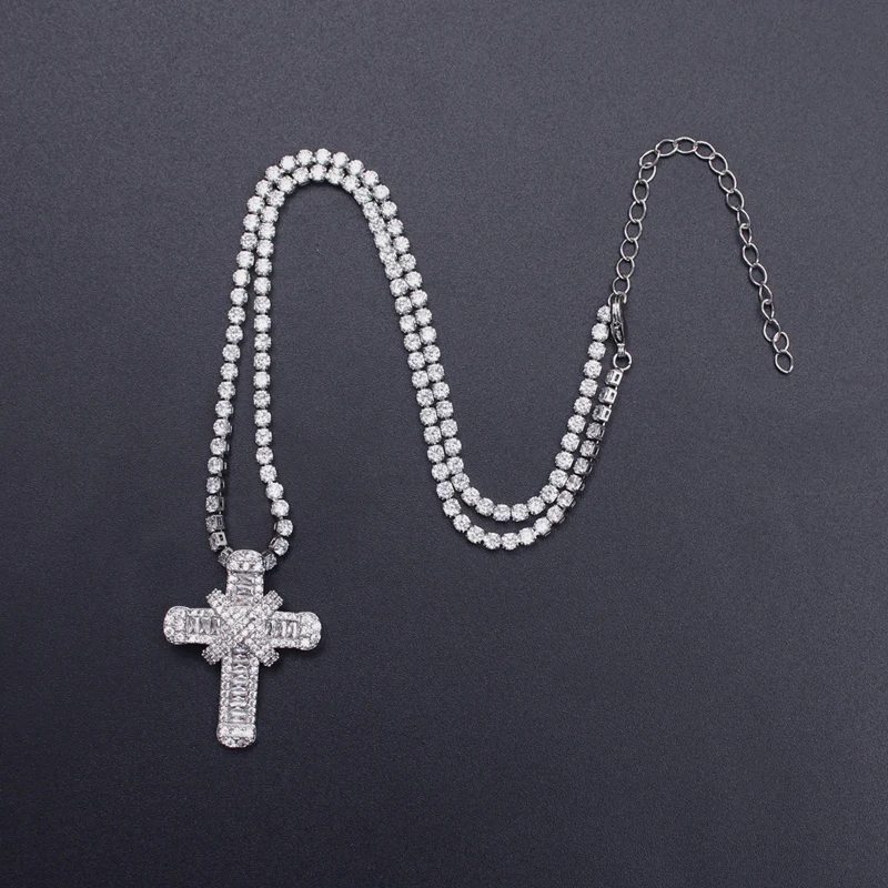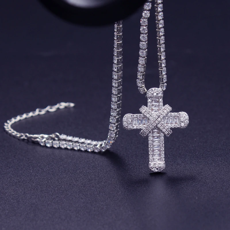 Ожерелье унисекс в виде креста, с фианитами, золотого и серебряного цвета