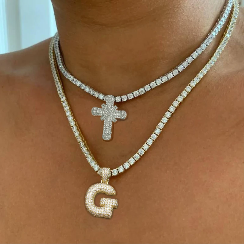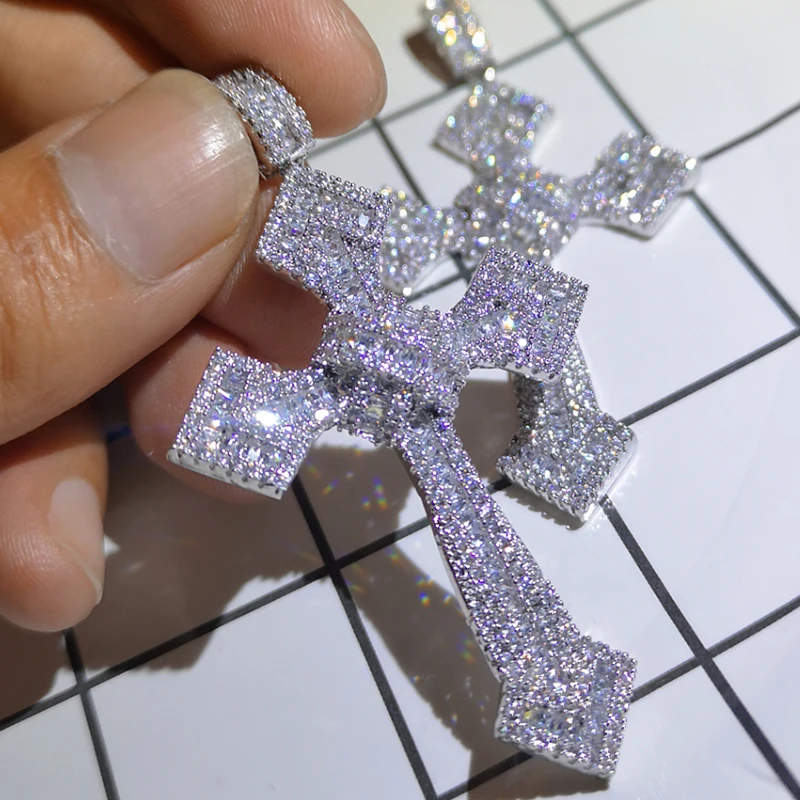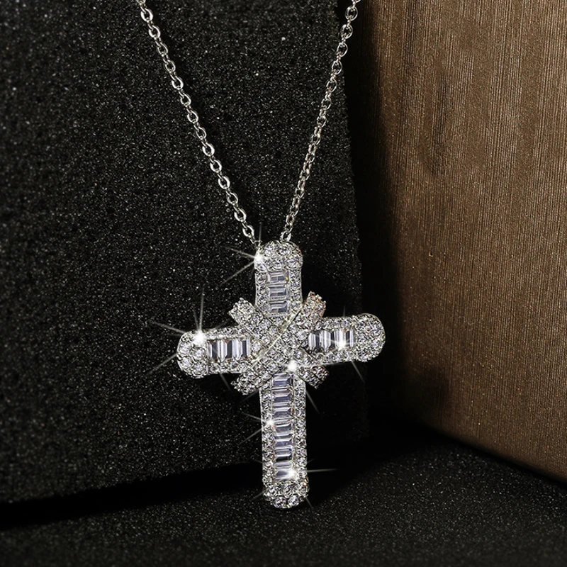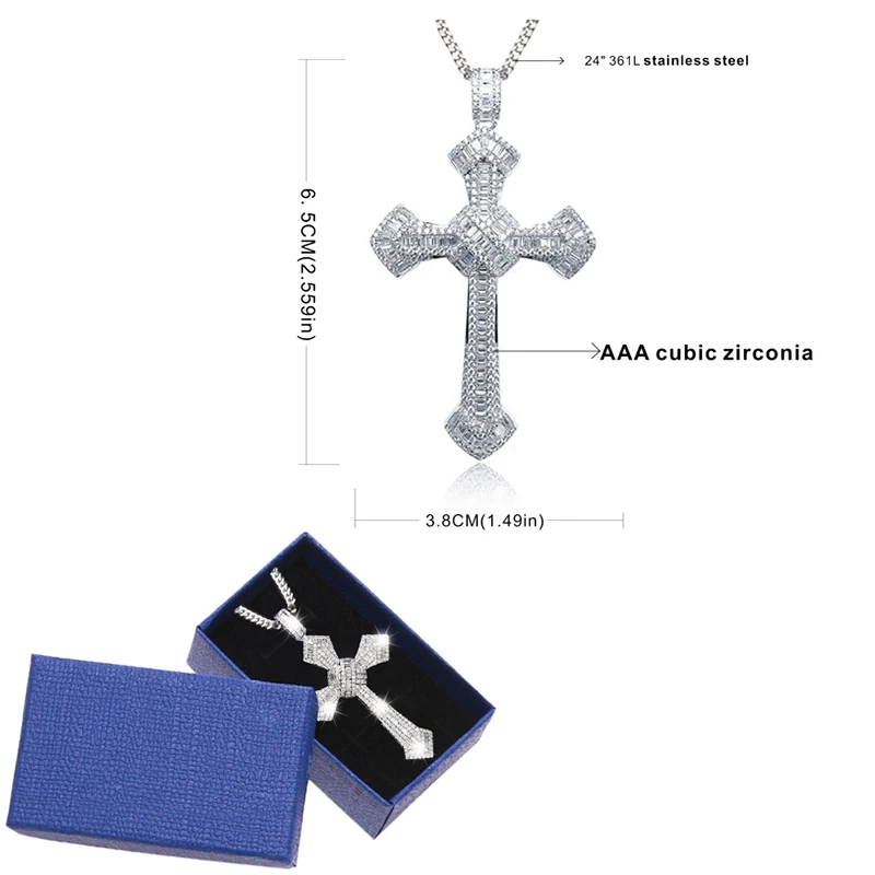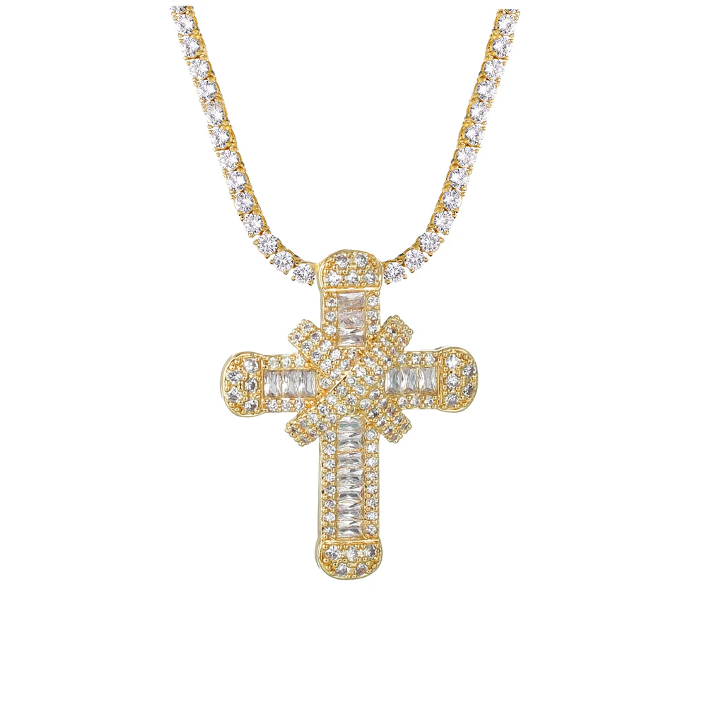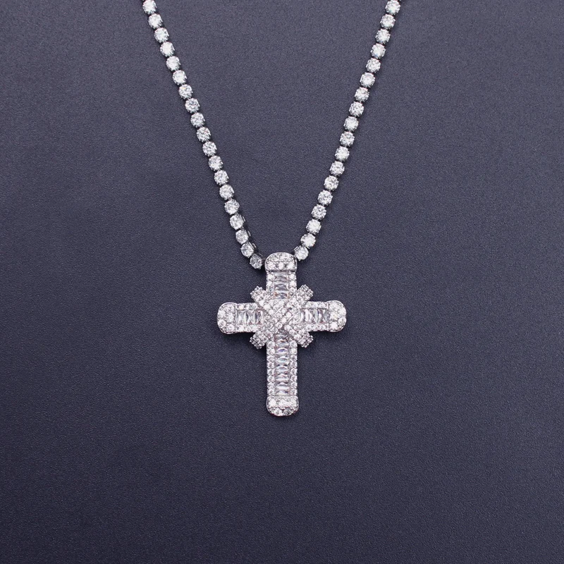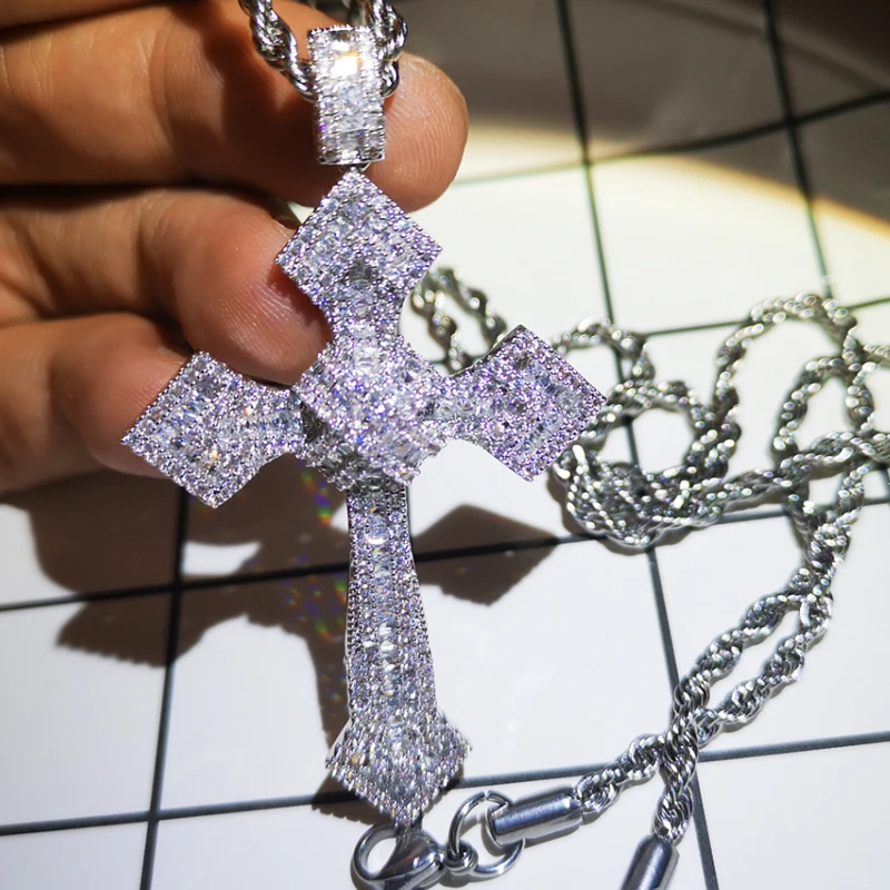 Ожерелье унисекс в виде креста, с фианитами, золотого и серебряного цвета