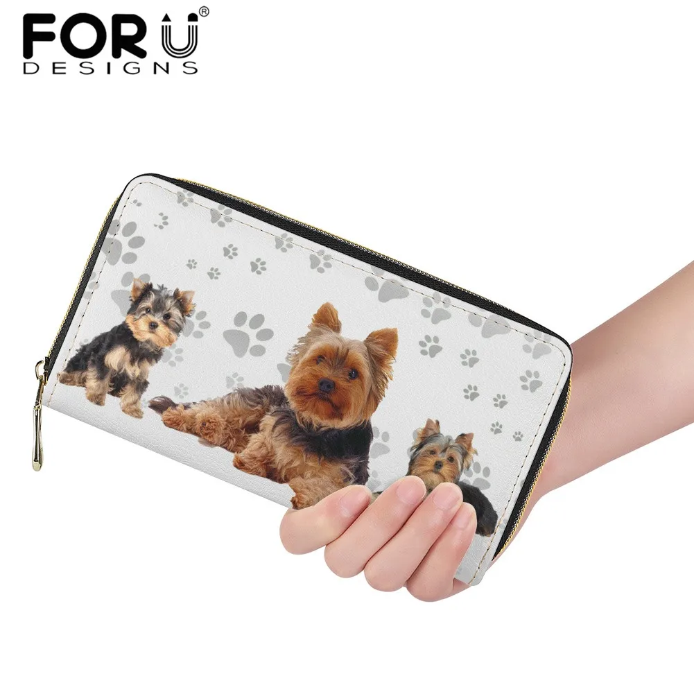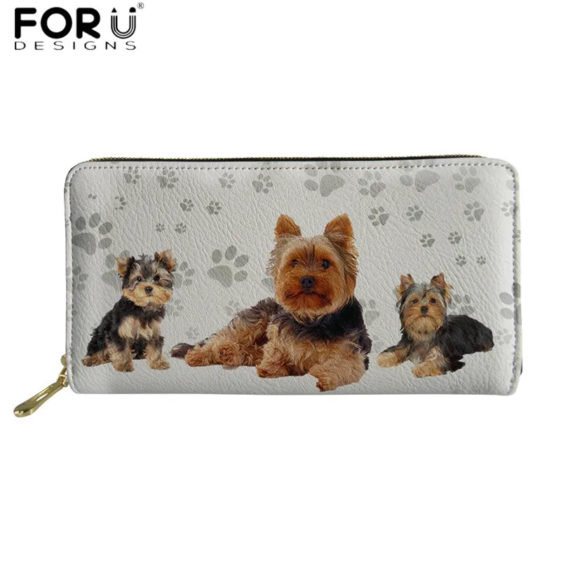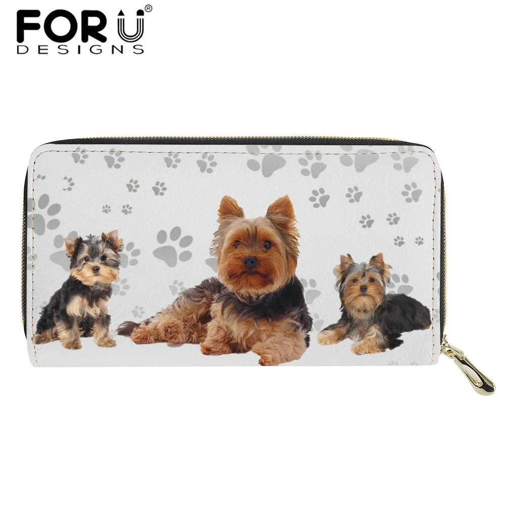 Кожаные кошельки FORUDESIGNS с изображением собачьей лапы, кошельки из искусственной кожи для йоркширского терьера, повседневные женские клатчи для покупок, чехлы для карт на молнии
