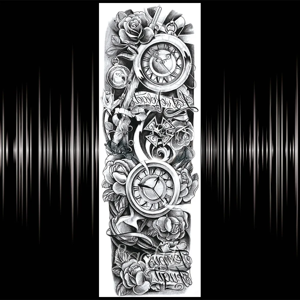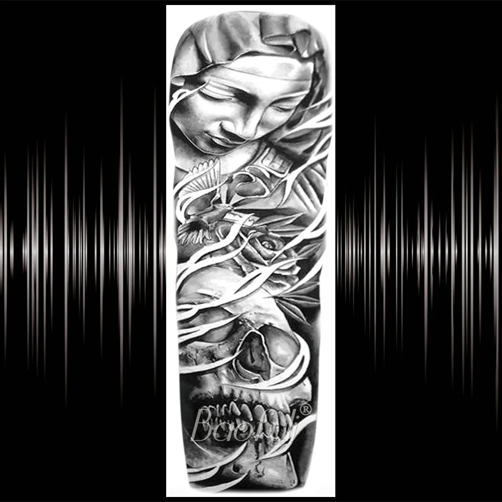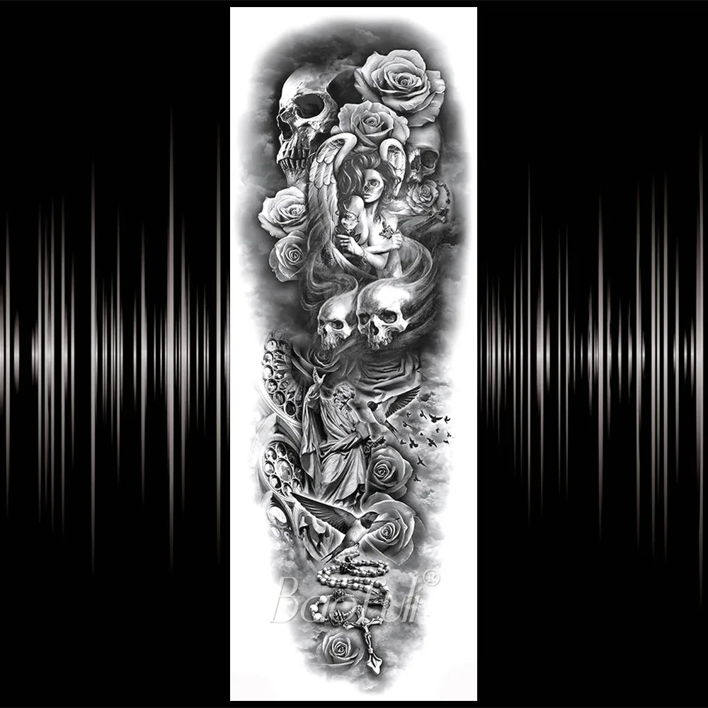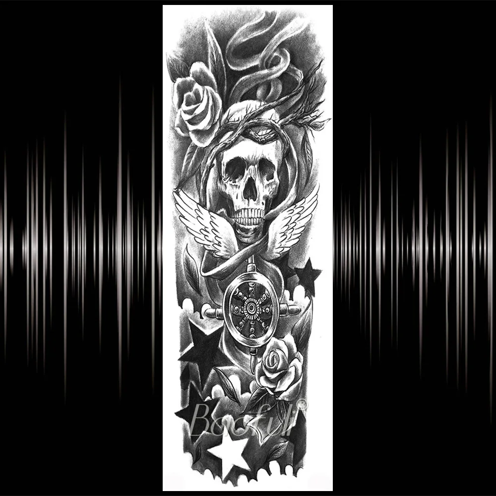 Реалистичная полная рука поддельный череп временная татуировка для мужчин женщин мужчин Роза компас боди арт тату стикер одноразовые Ангел Монстр тату