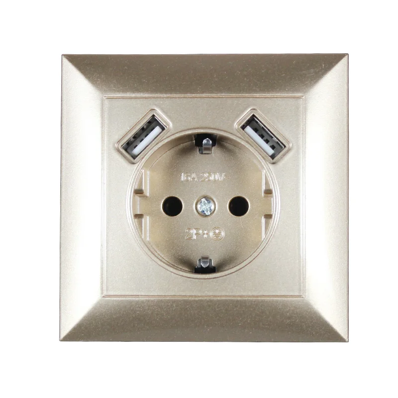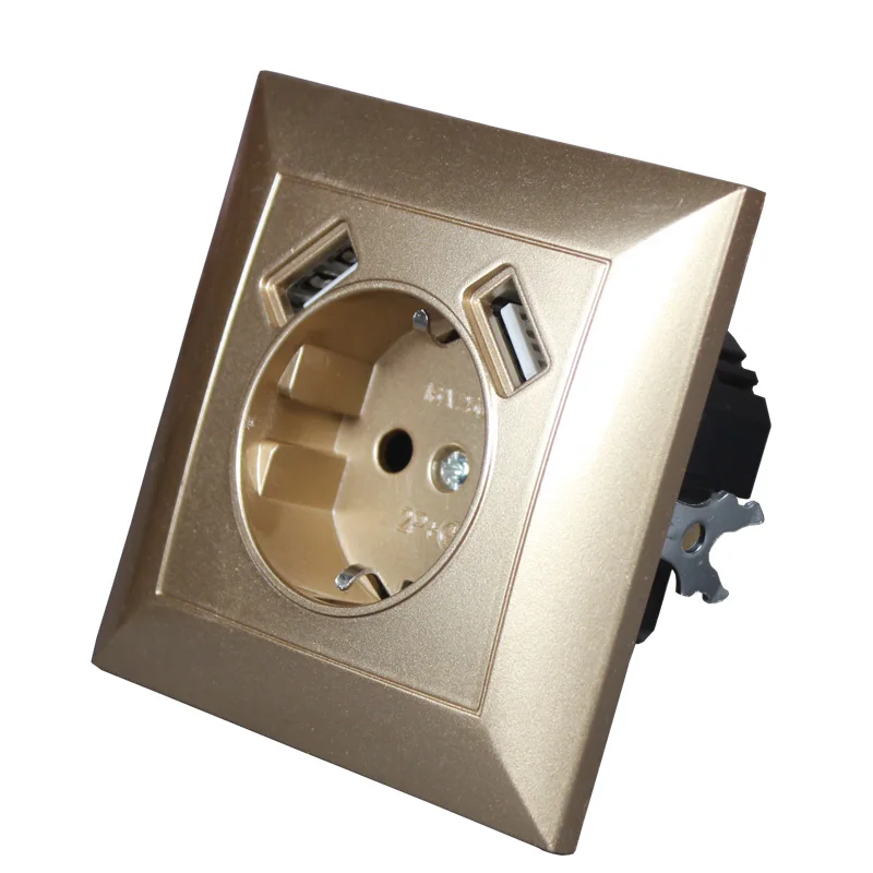 Новый USB настенная розетка для зарядки телефона Бесплатная доставка двойной USB Порты и разъёмы 5V 2A Usb electrique на выходе usb murale золотой цвет V1-01J