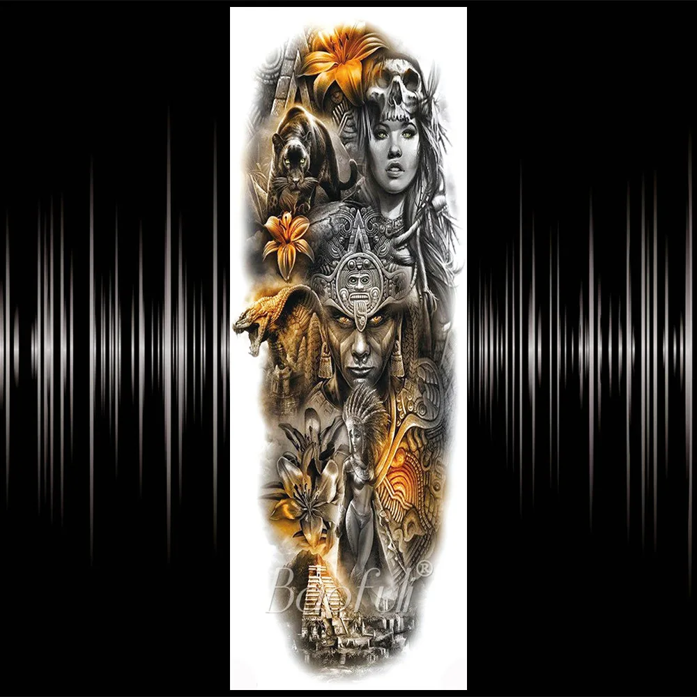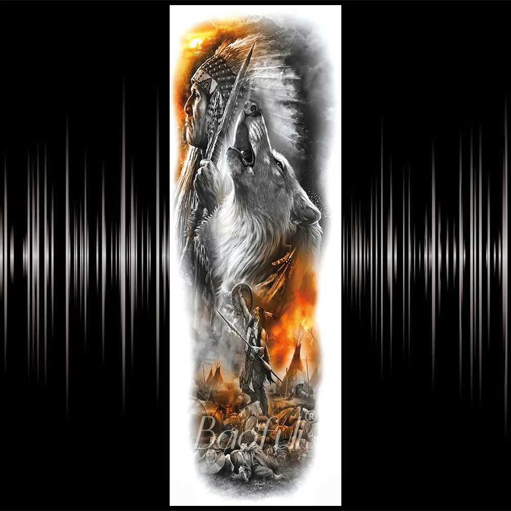 Временная татуировка для мужчин и женщин, индийская, племенная голова волка, искусство, поддельные татуировки, водостойкая, Реалистичная Татуировка воина