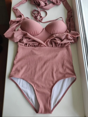 Купальник женский слитный с оборками, пикантная одежда для плавания...