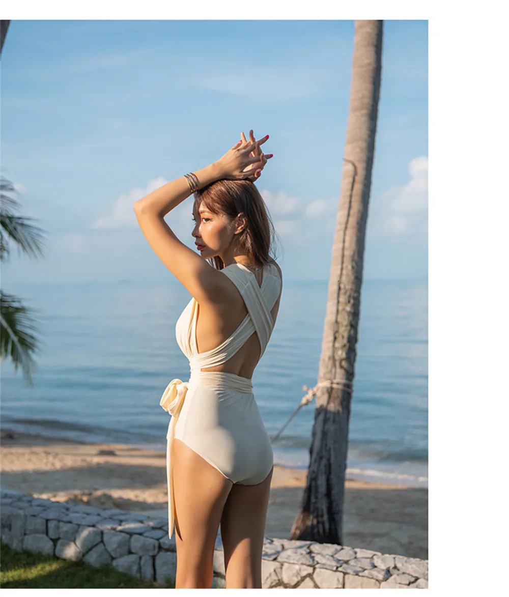 Пикантный Цельный купальник с высоким вырезом, Женская однотонная одежда для плавания, бандажный Монокини, купальный костюм с борцовкой на спине, трикини с поясом, белый купальный костюм с подкладкой