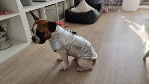 Хорошая тёплая жилетка, на рассела 8,3 кг самый большой размер чуть великоват
