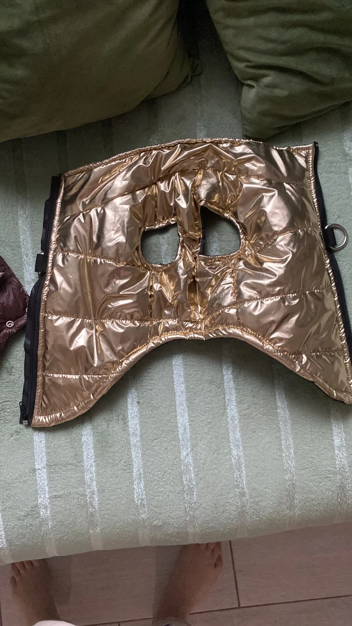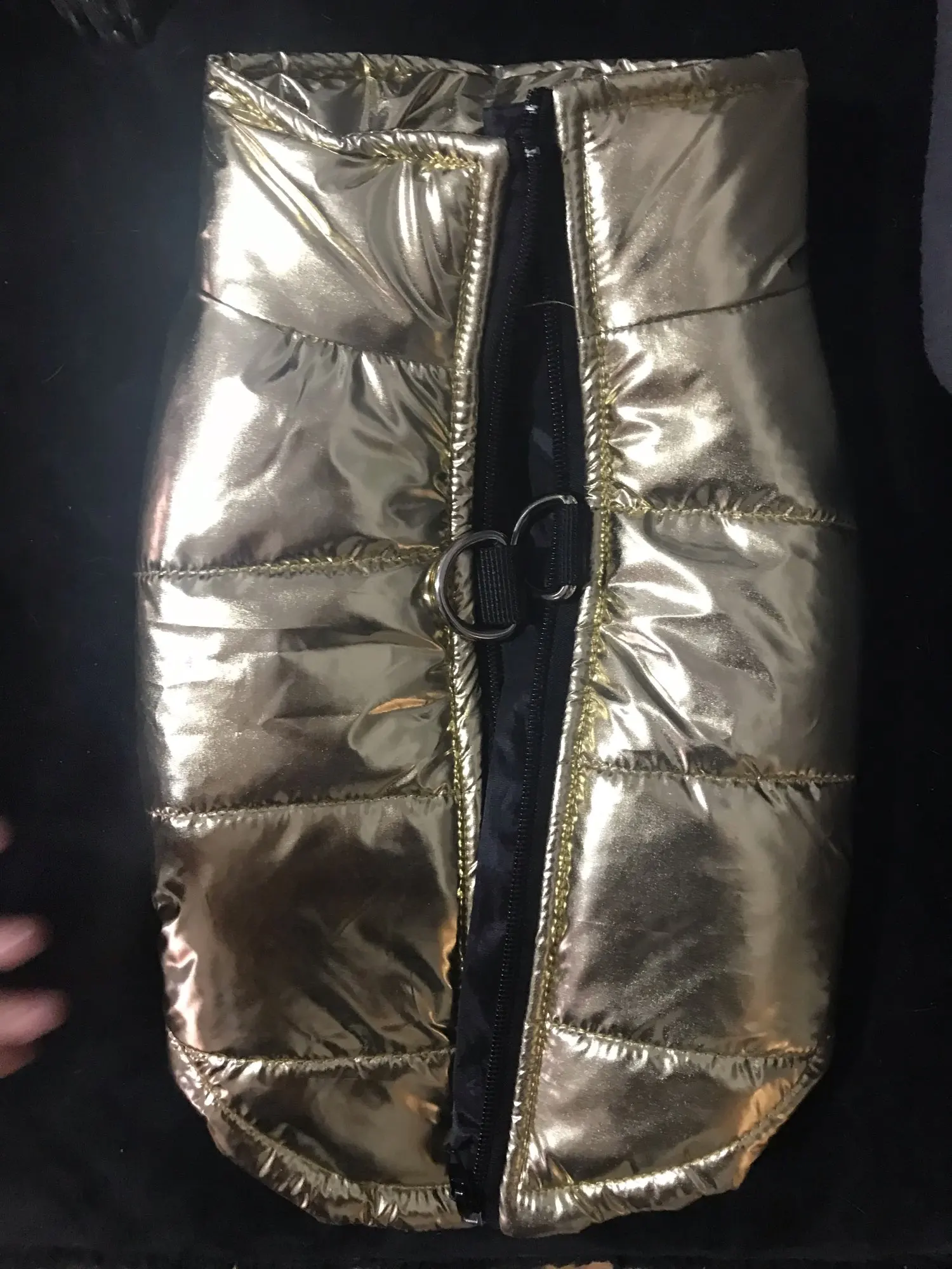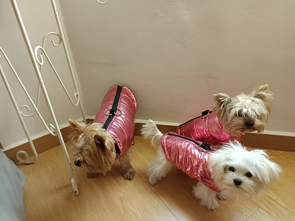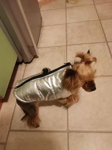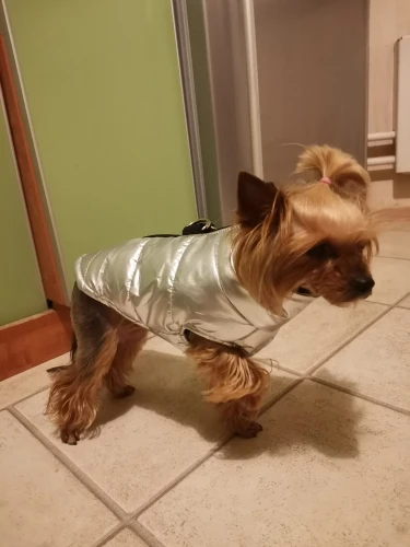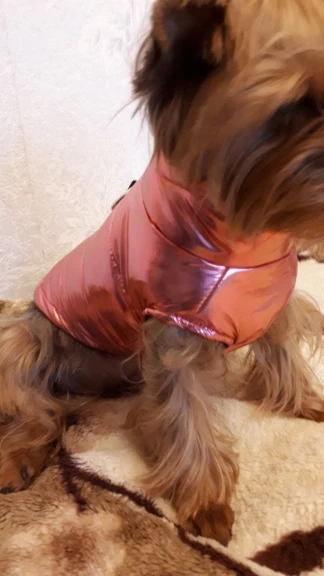 Жилетка очень красивая и качественная, всем очень понравилась! На йорка 3 кг М подошла идеально. Быстрая доставка. Спасибо продавцу!