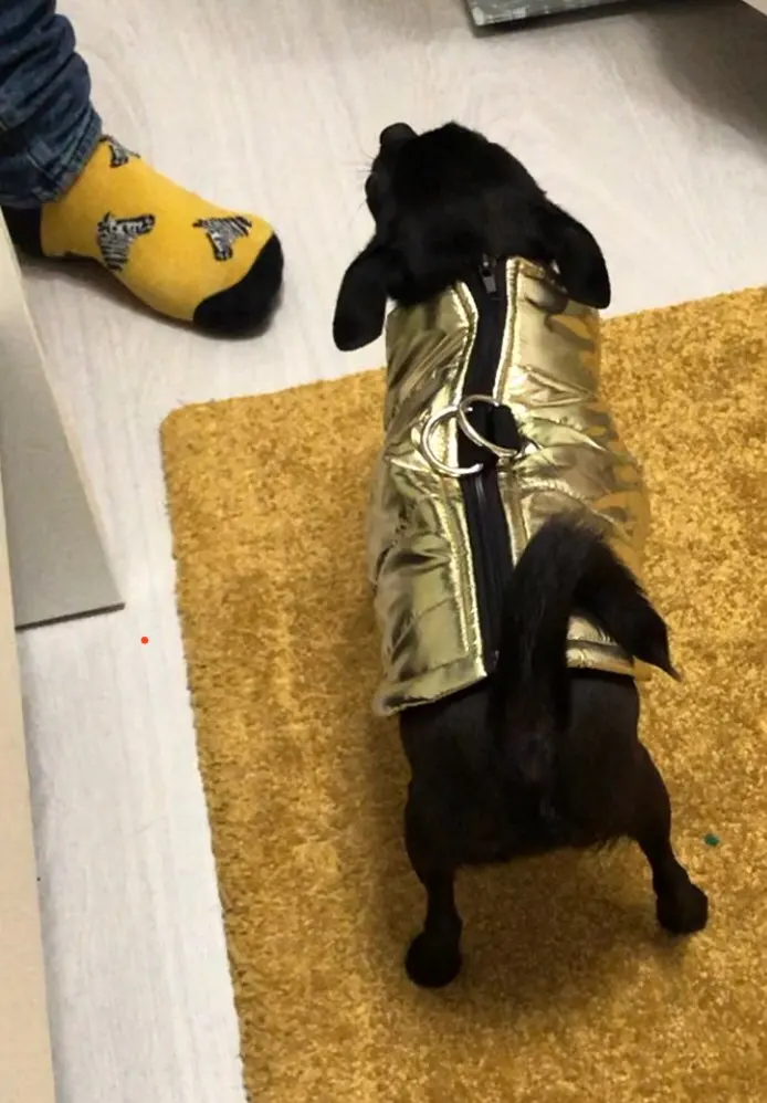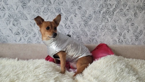 Курточка очень понравилась-нарядная красивая Для стандартной таксы 11 кг чуть тесновата но очень красива