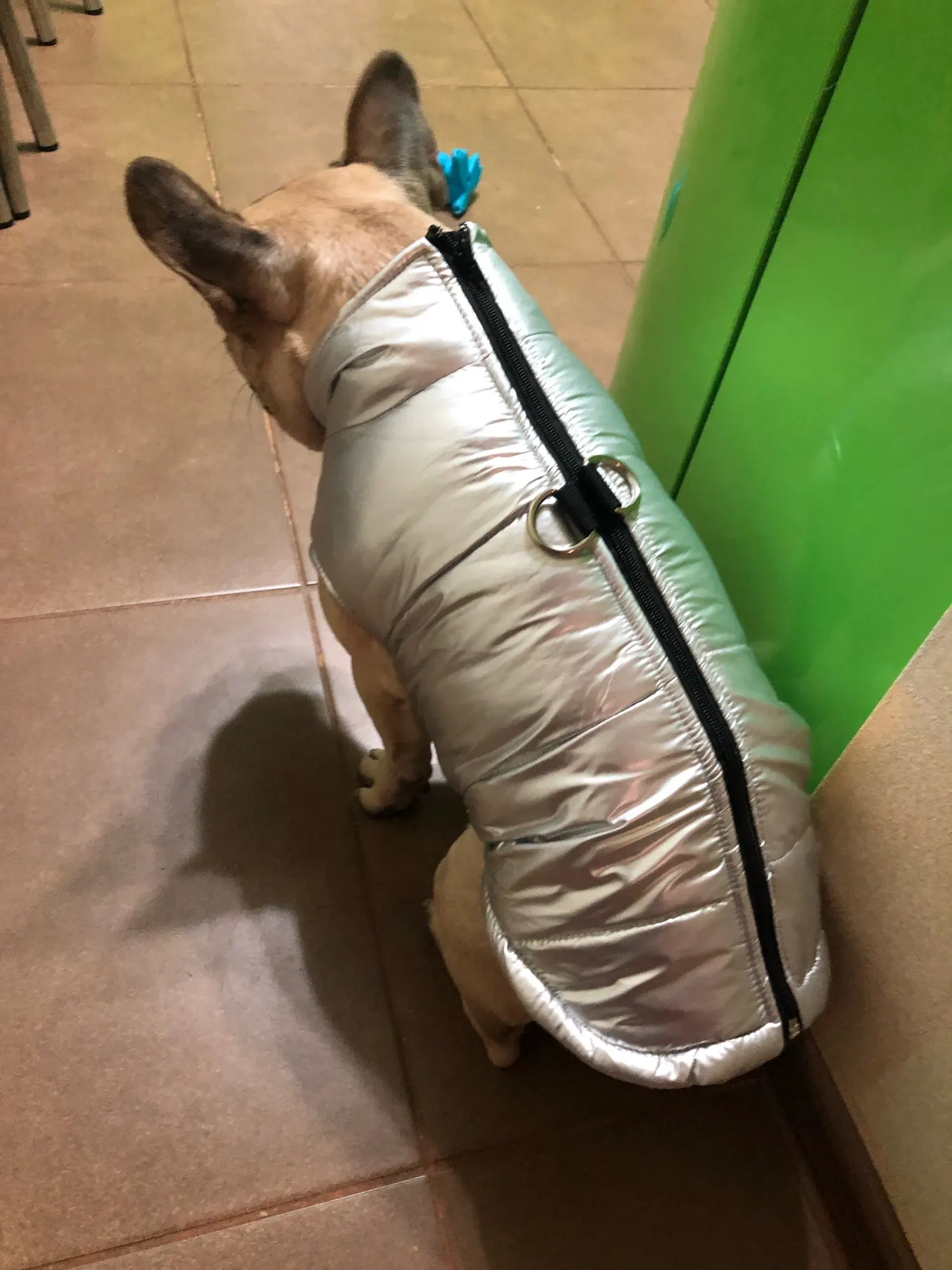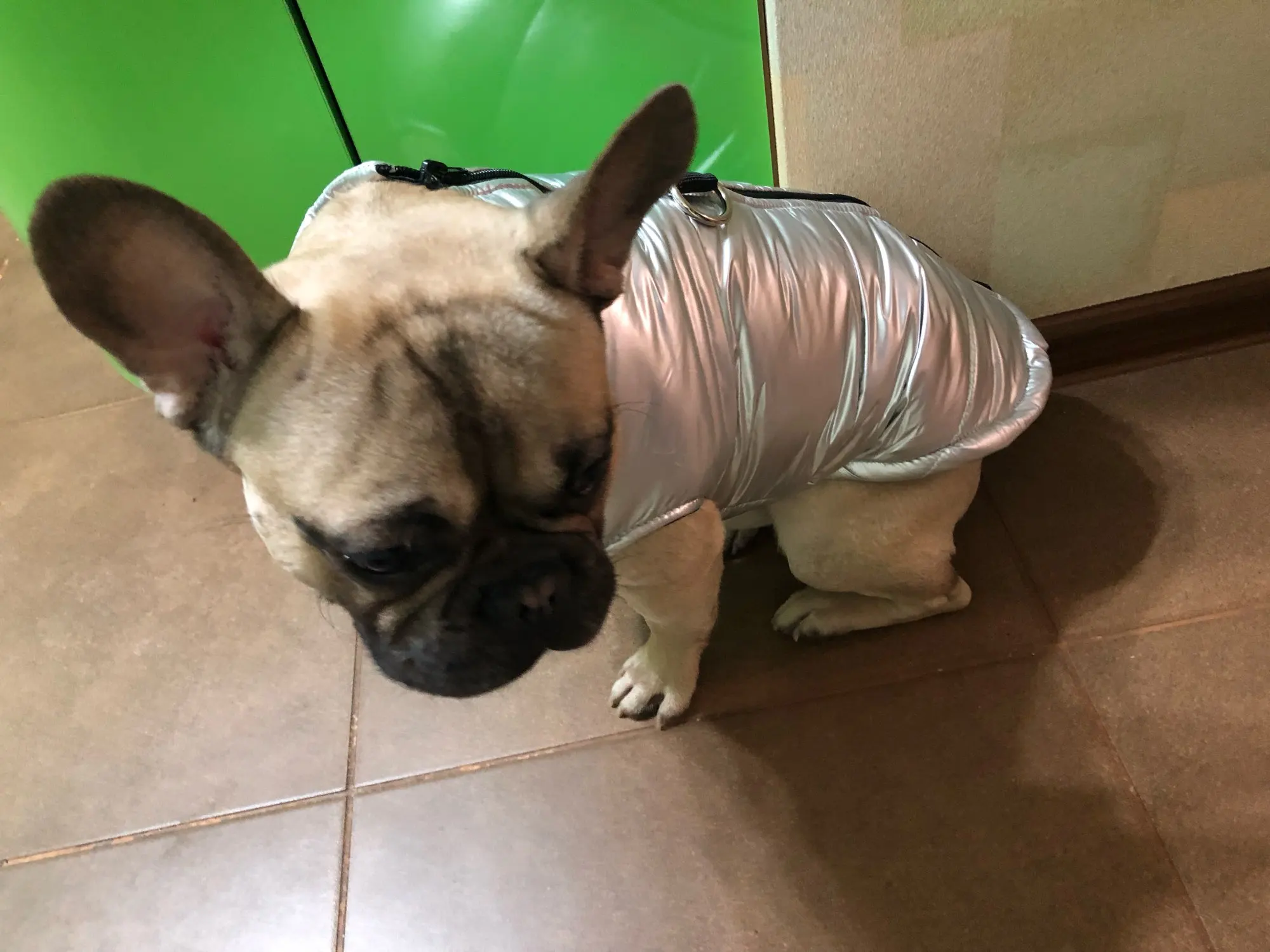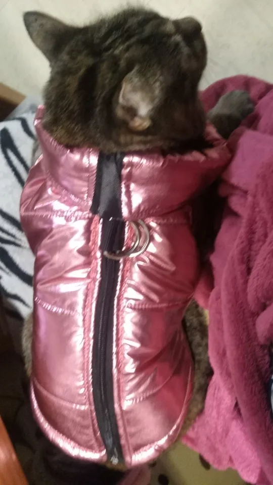 Очень мило! Shih Tzu имеет 6 кг! Идеальный размер. Негативы: 1. Воротник очень высокий, поэтому необходимо оставить молнию немного открытой. 2. Через некоторое время ткань начинает терять яркость и цвет на животе.