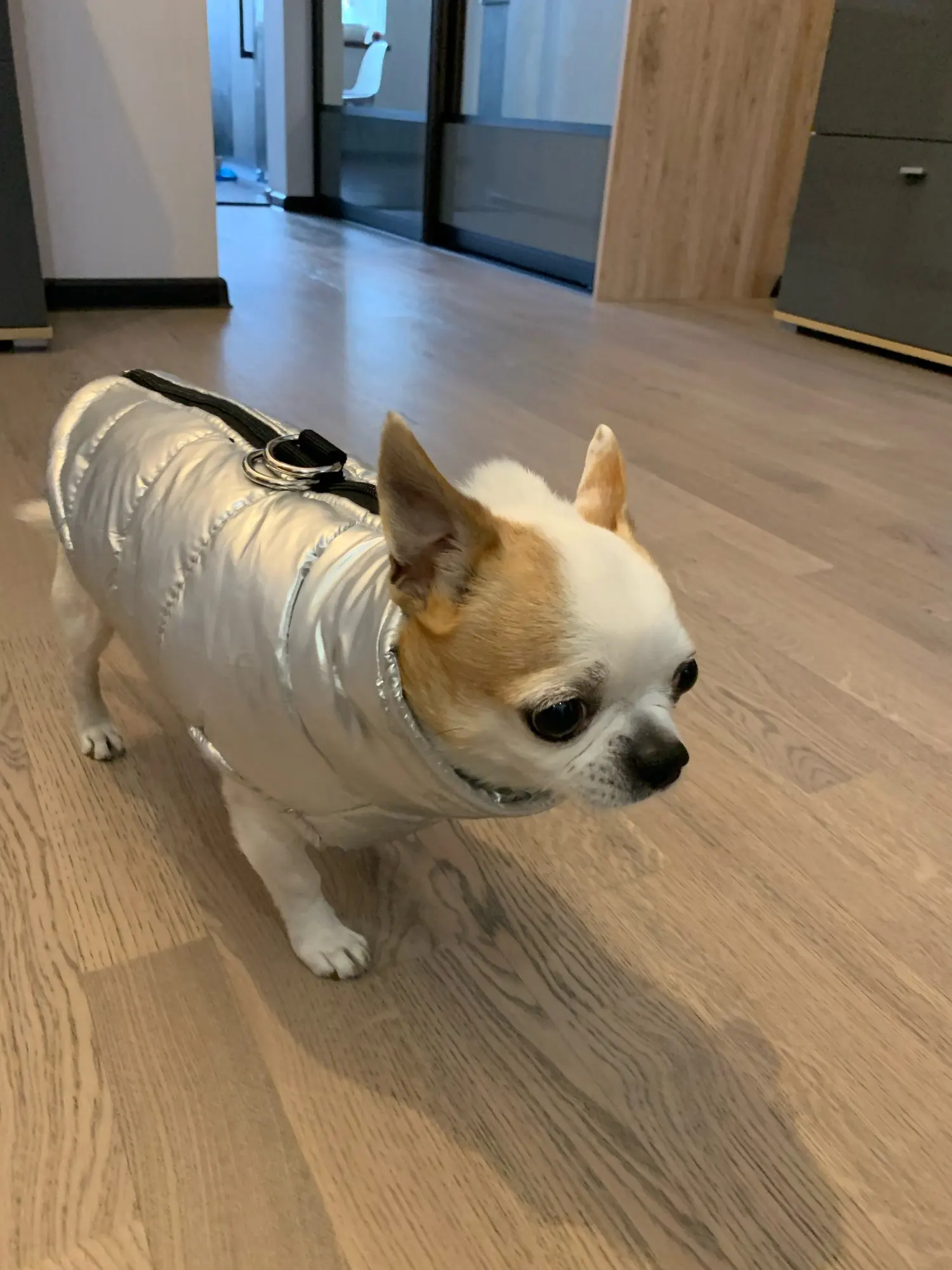 На щенка чиха весом 1,3 кг оказалась велика. Подрастёт, будем носить! А так жилетка понравилась, сшита качественно. Рекомендую!