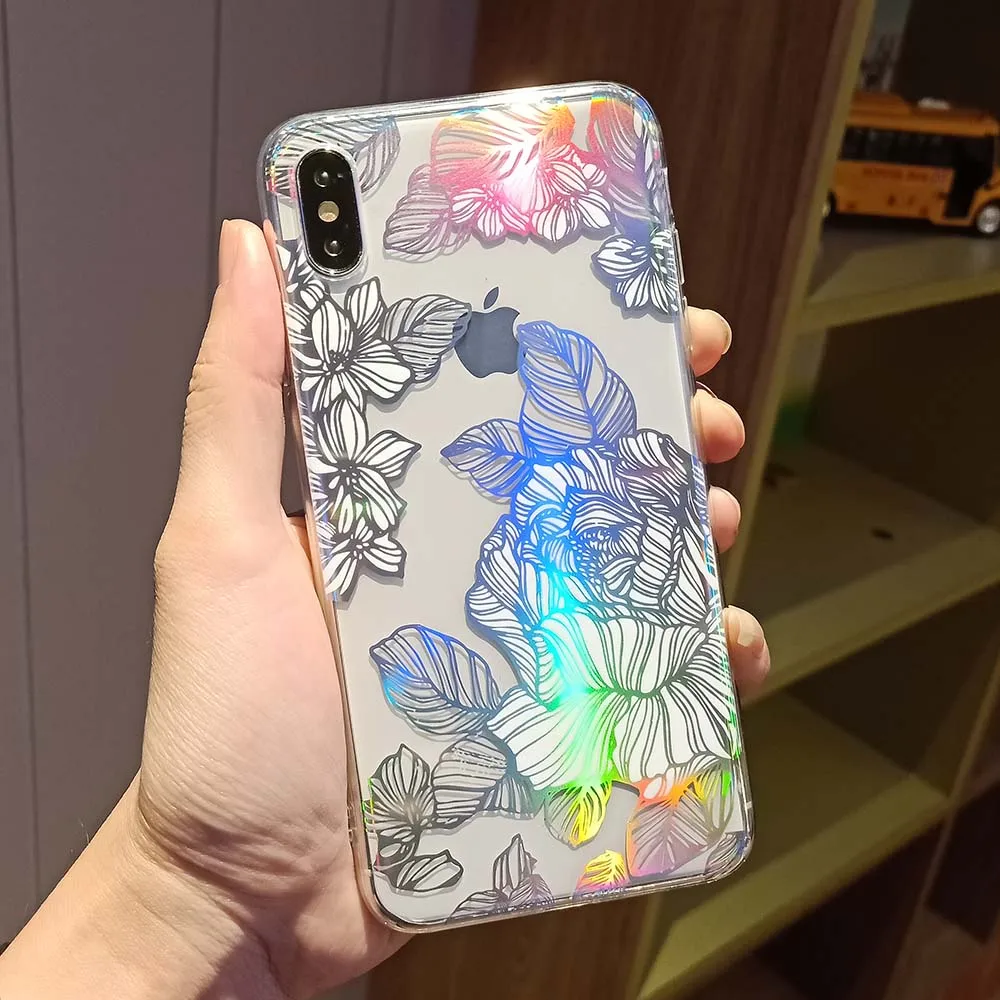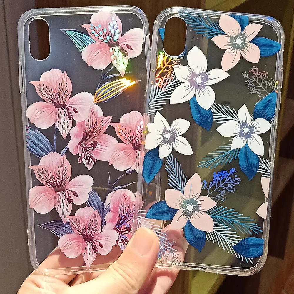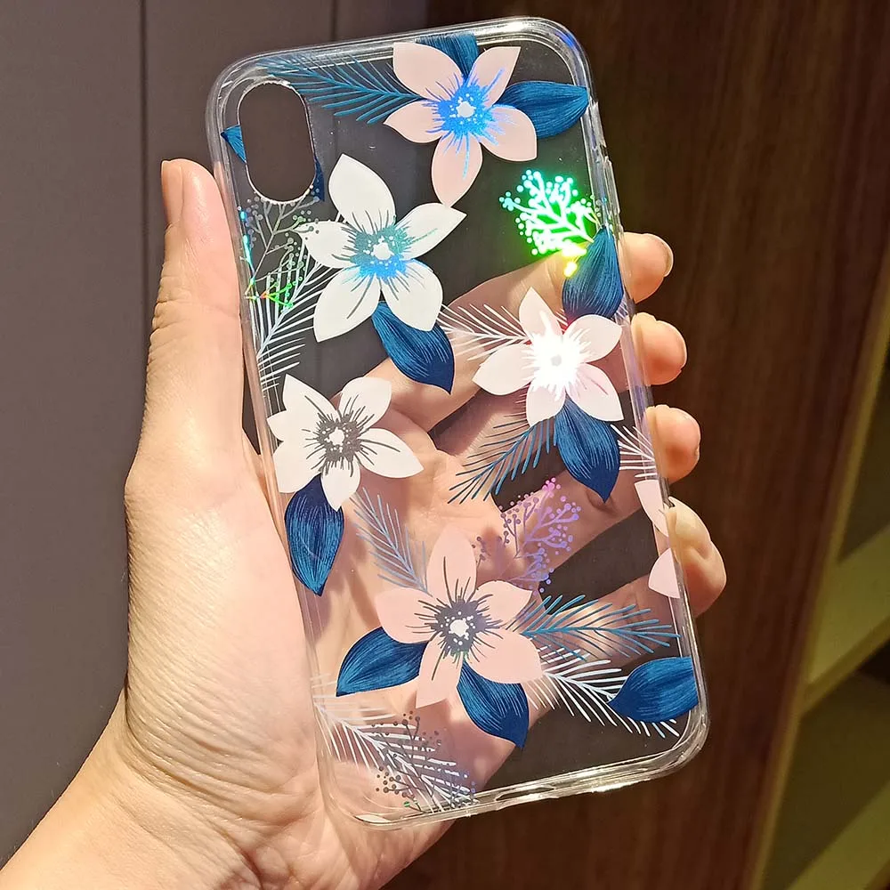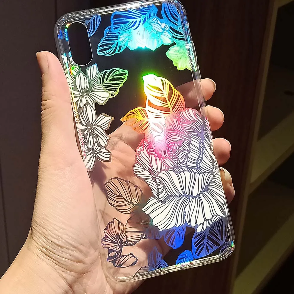 Роскошный чехол с градиентным лазерным покрытием и цветами для Samsung Galaxy S10 S20 Plus S20 Ultra M30s, прозрачный мягкий голографический чехол icon star icon star icon star icon star icon star
