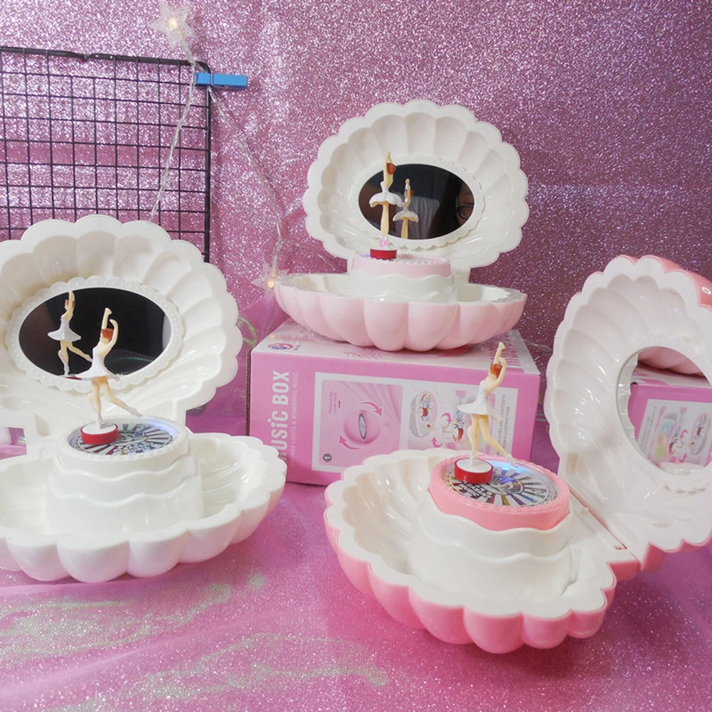 Музыкальная шкатулка в форме ракушки с вращающейся светодиодной подсветкой для девочек, музыкальная игрушка, подарок для детей на Рождество, обучающие игрушки для детей, подарок для детей