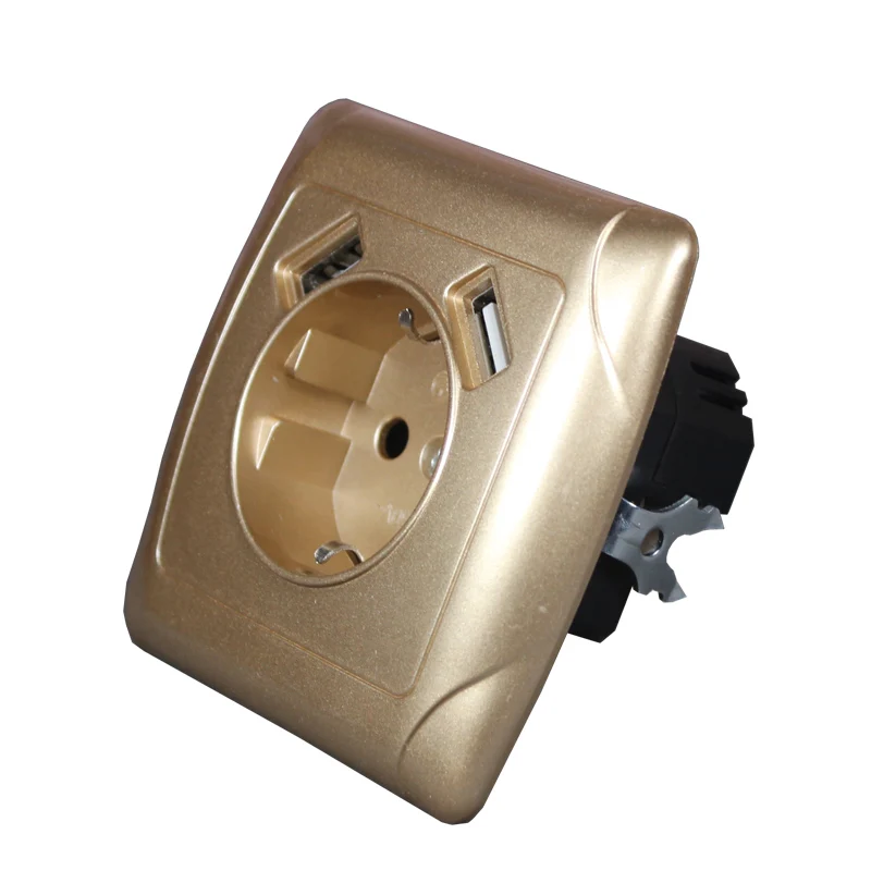 Настенная USB-розетка, бесплатная доставка, двойной USB-порт 5 В, 2 А, Usb-адаптер, высокое качество, usb murale, золотой цвет A2-01J