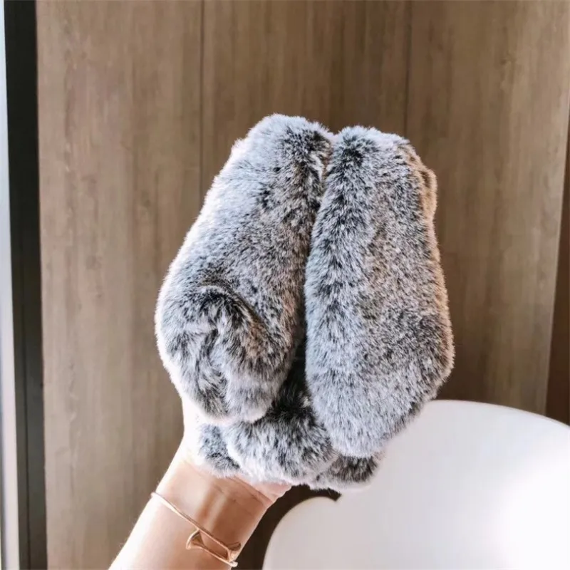 Чехол для телефона с пушистым кроличьим мехом для Iphone 12 MINI 11 Pro Max X XS Max XR 6 6S 7 Plus Iphone 4 4s 5 5s Se