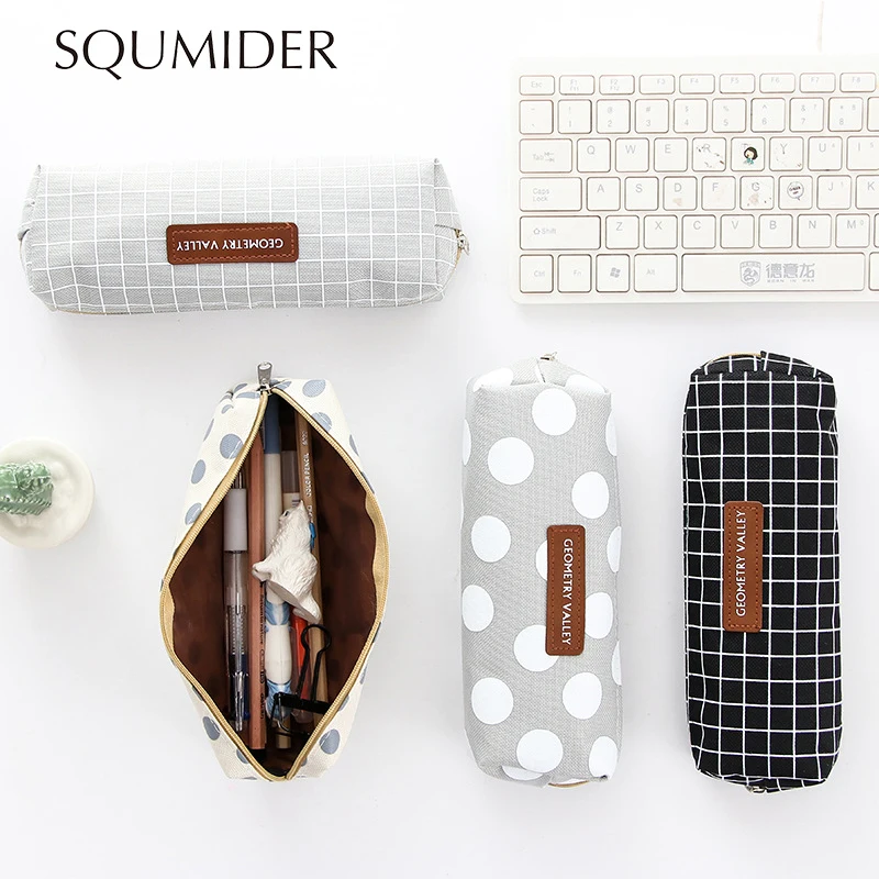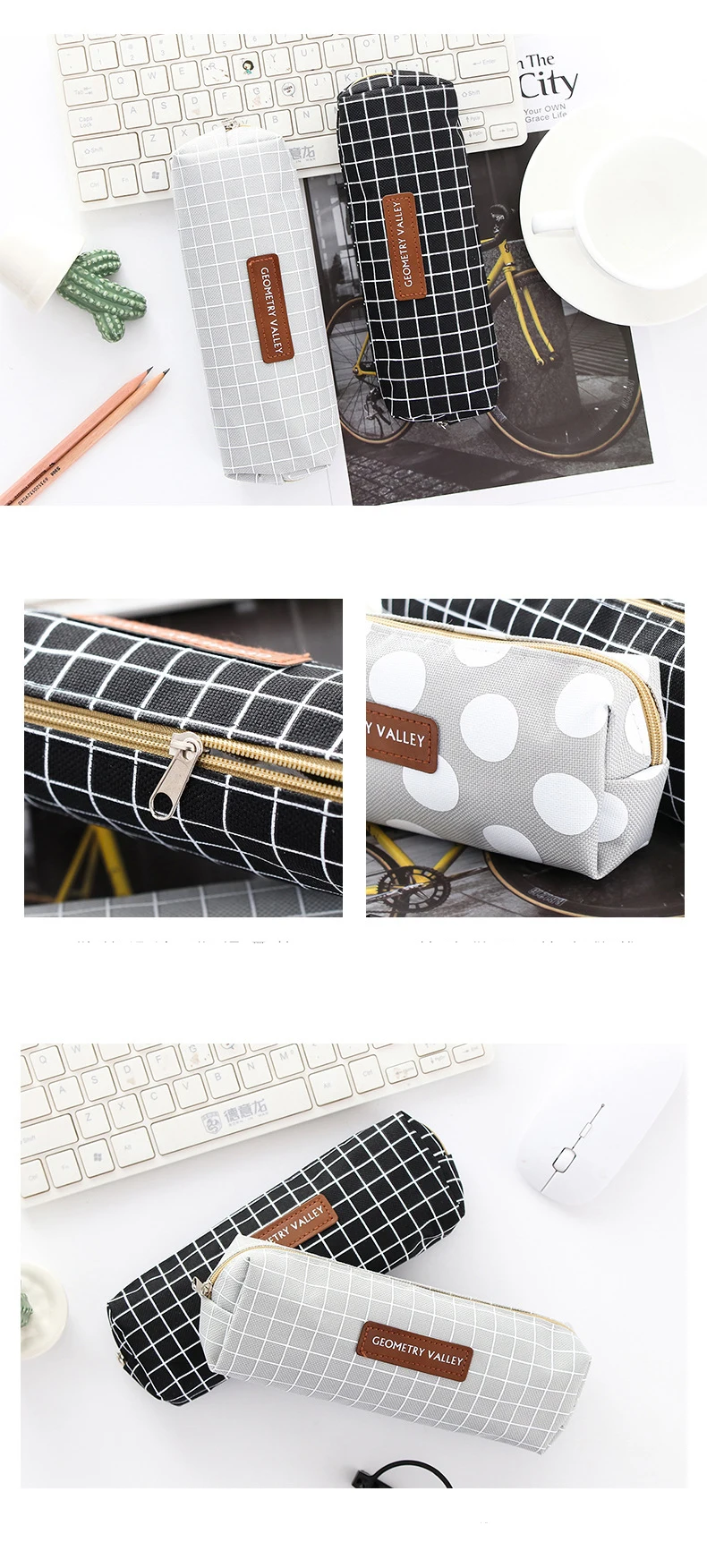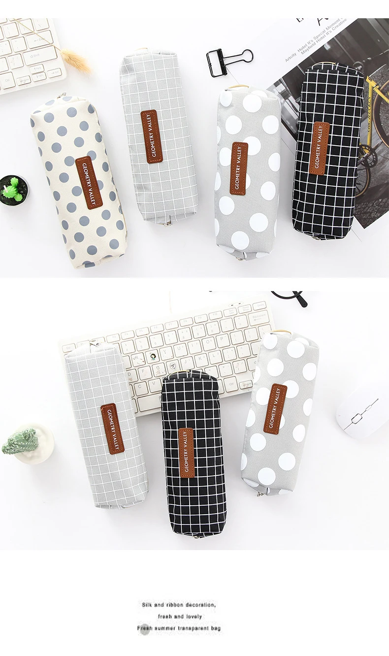 Простой однотонный чехол для карандашей клетка, горошек, качественный холщовый чехол для карандашей, школьные принадлежности, милый школьный пенал для карандашей