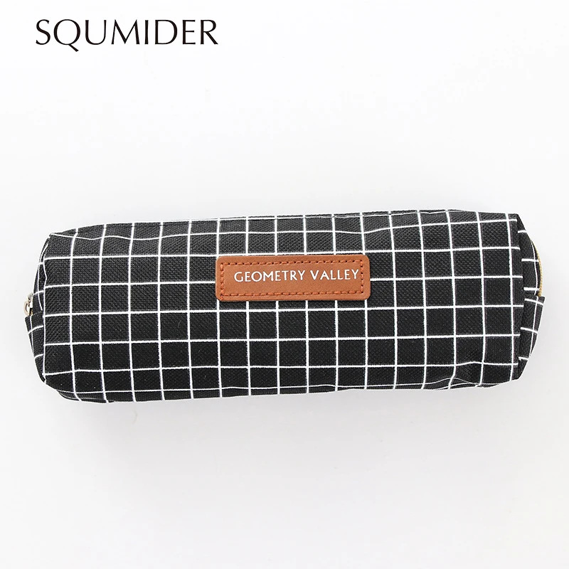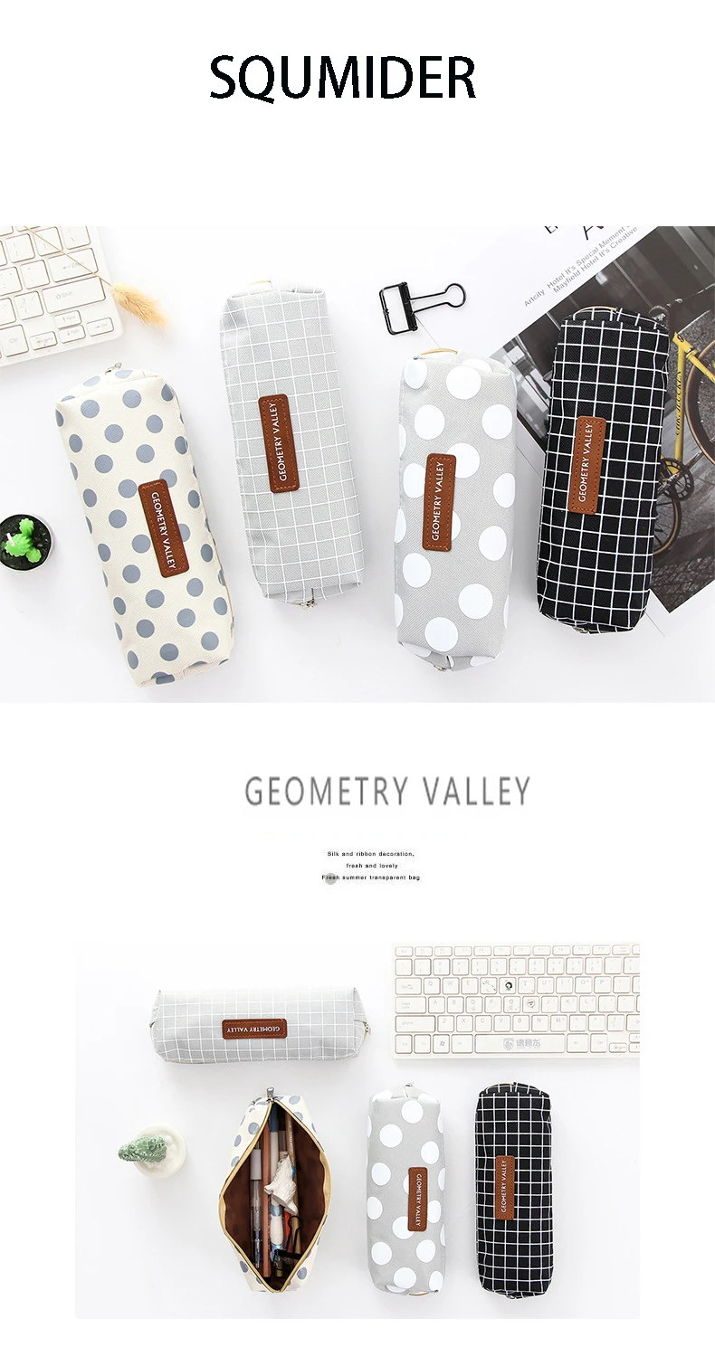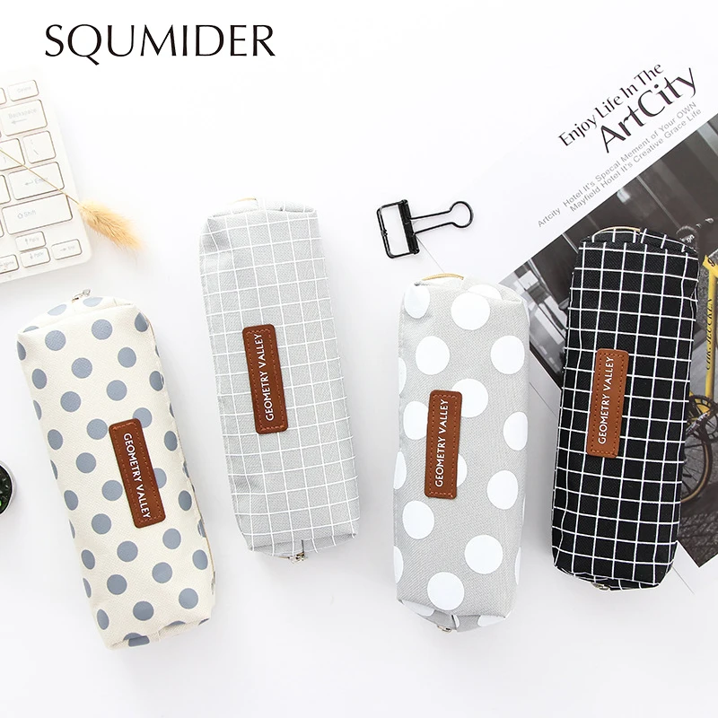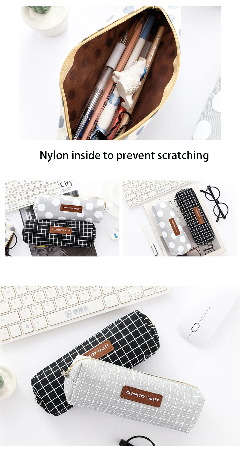 Простой однотонный чехол для карандашей клетка, горошек, качественный холщовый чехол для карандашей, школьные принадлежности, милый школьный пенал для карандашей