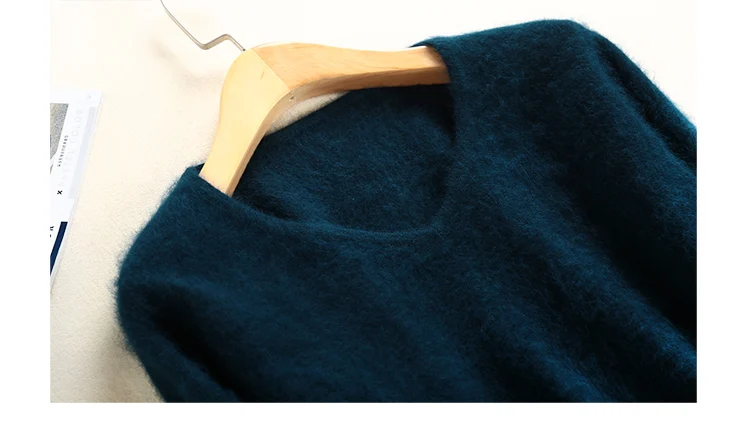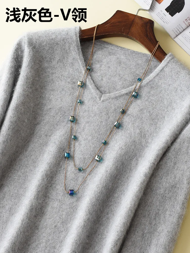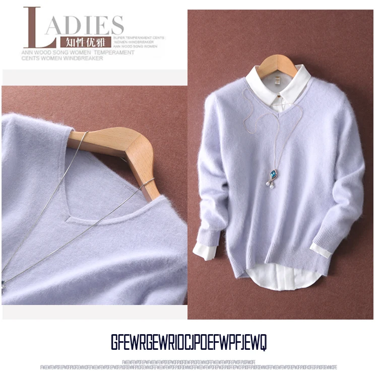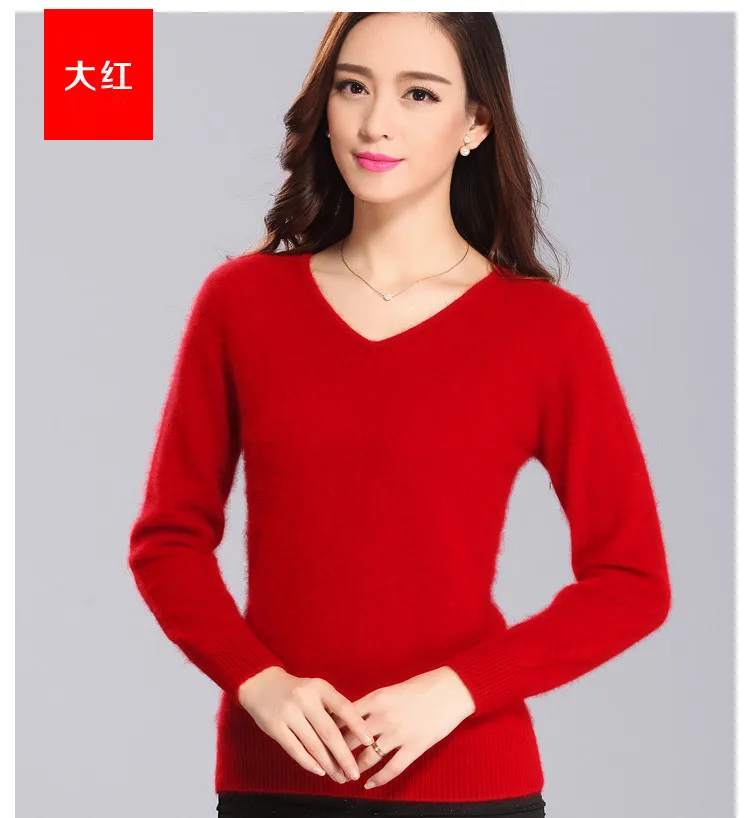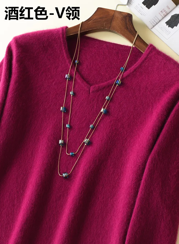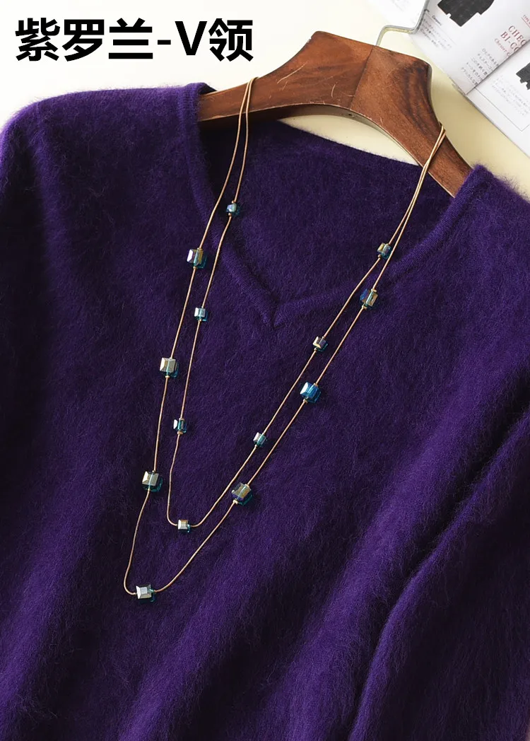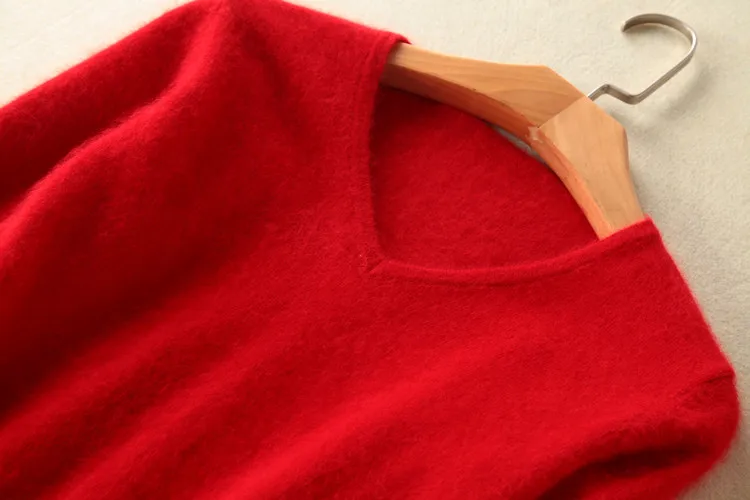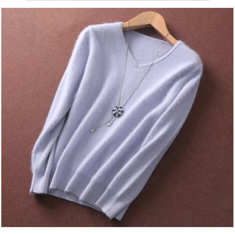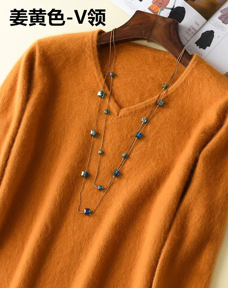 Женский пушистый кашемировый свитер, с мягким мехом, с V-образным вырезом, Осень-зима, брендовые джемпер
