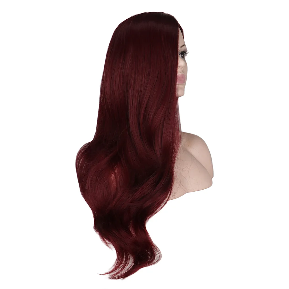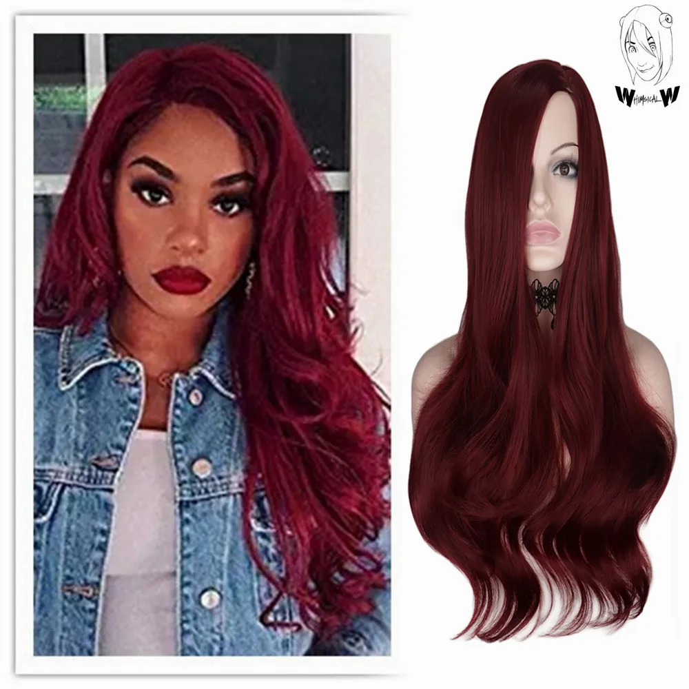 Чудесный синтетический парик W, длинные волнистые красные искусственные волосы для женщин, естественный внешний вид, боковая часть, термостойкие дышащие волосы