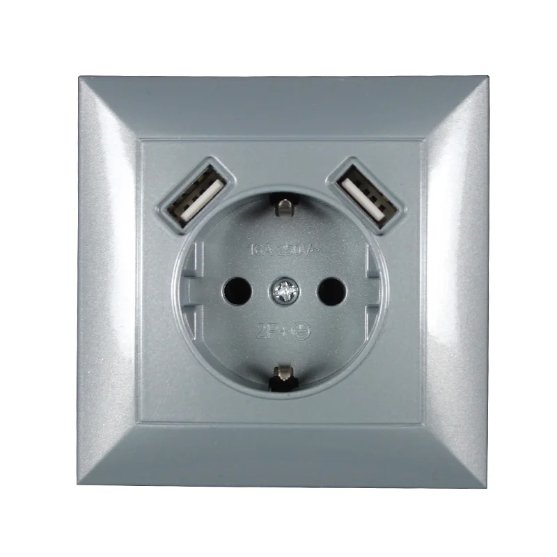 Настенная розетка с двумя USB-портами, 5 В, 2 А, AGY3-01, серый цве...