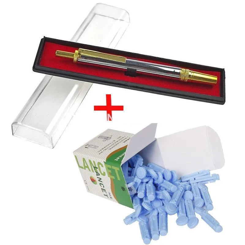 1 шт. ручка + 200 шт. (4 коробки) иглы ручка из нержавеющей стали для скручивания ланцета крови, терапии баночной терапии и тестирования крови